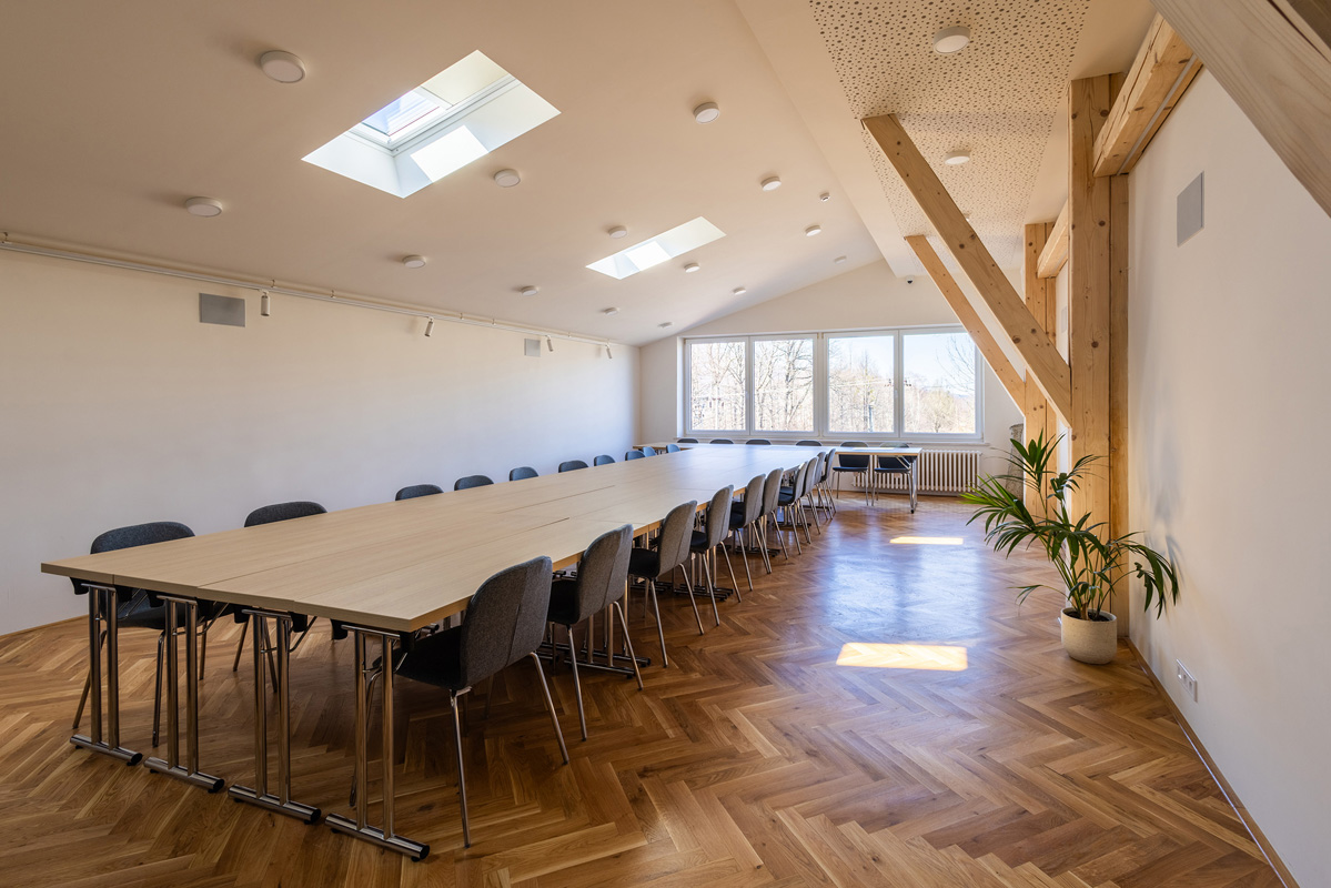 recepce, bar, restaurace, konferenční místnosti s projekční technikou, úschovna zavazadel, lyží i kol, wi-fi připojení k internetu, venkovní altánek, vyhrazené parkoviště