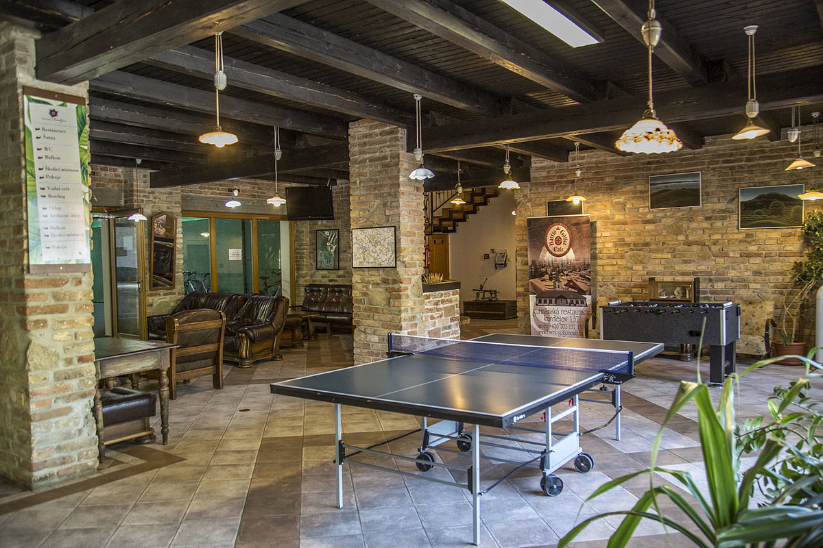 recepce, velké lobby restaurace s barem, bar v rámci wellness centra, vinařství s posezením, bohatá vinotéka s nabídkou lokálních tichých i šumivých vín, 2x společenská místnost, 8x seminární místnosti s projekční technikou max. až pro 200 os., zahrada s dětským hřištěm, výtah (Vinař), vyhrazené parkoviště, wi-fi připojení k internetu
