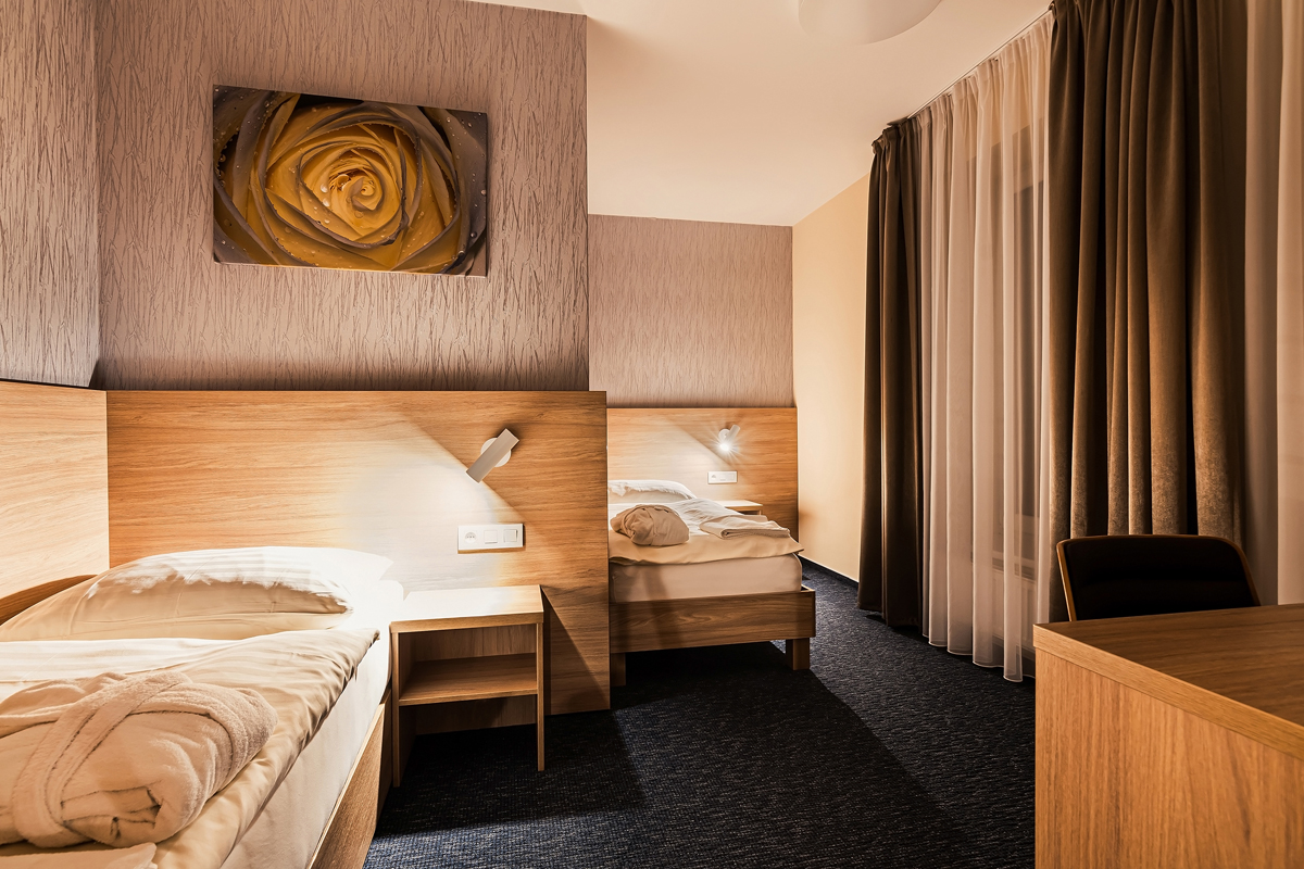 TV sat (na vyžádání), fén, trezor, wi-fi připojení k internetu, v pokojích typu Superior: mini lednička, sada na kávu /čaj