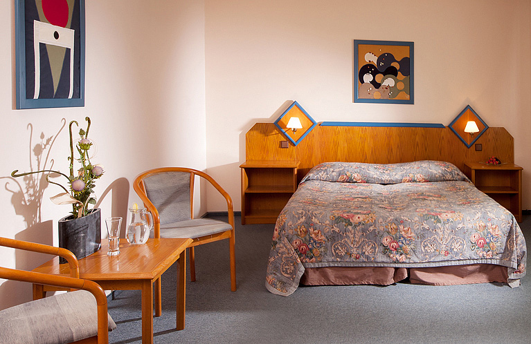 pokoj zpravidla s manželskou postelí či 2 samostatnými lůžky a případně přistýlkou, sociální zařízení se sprchou
