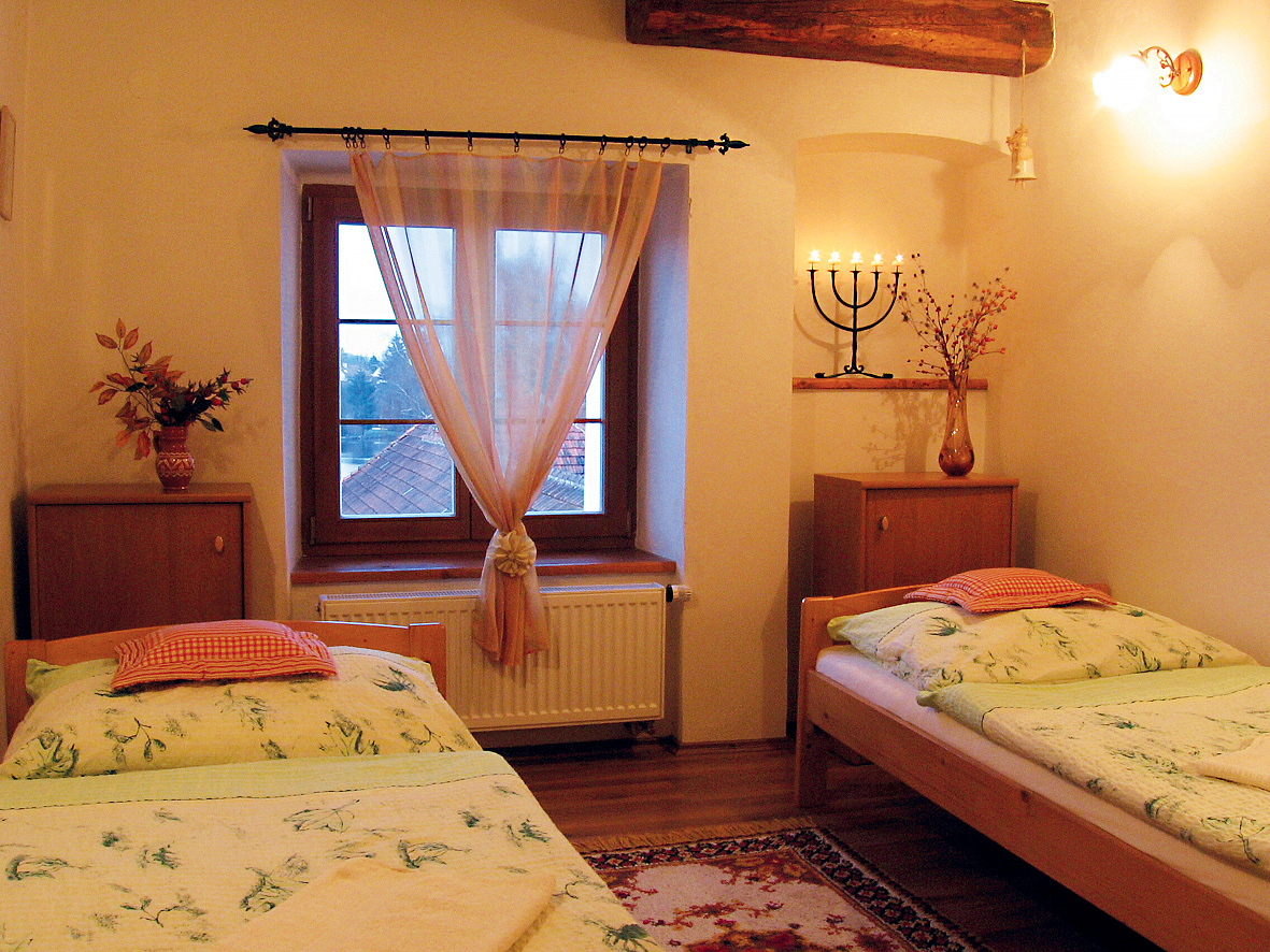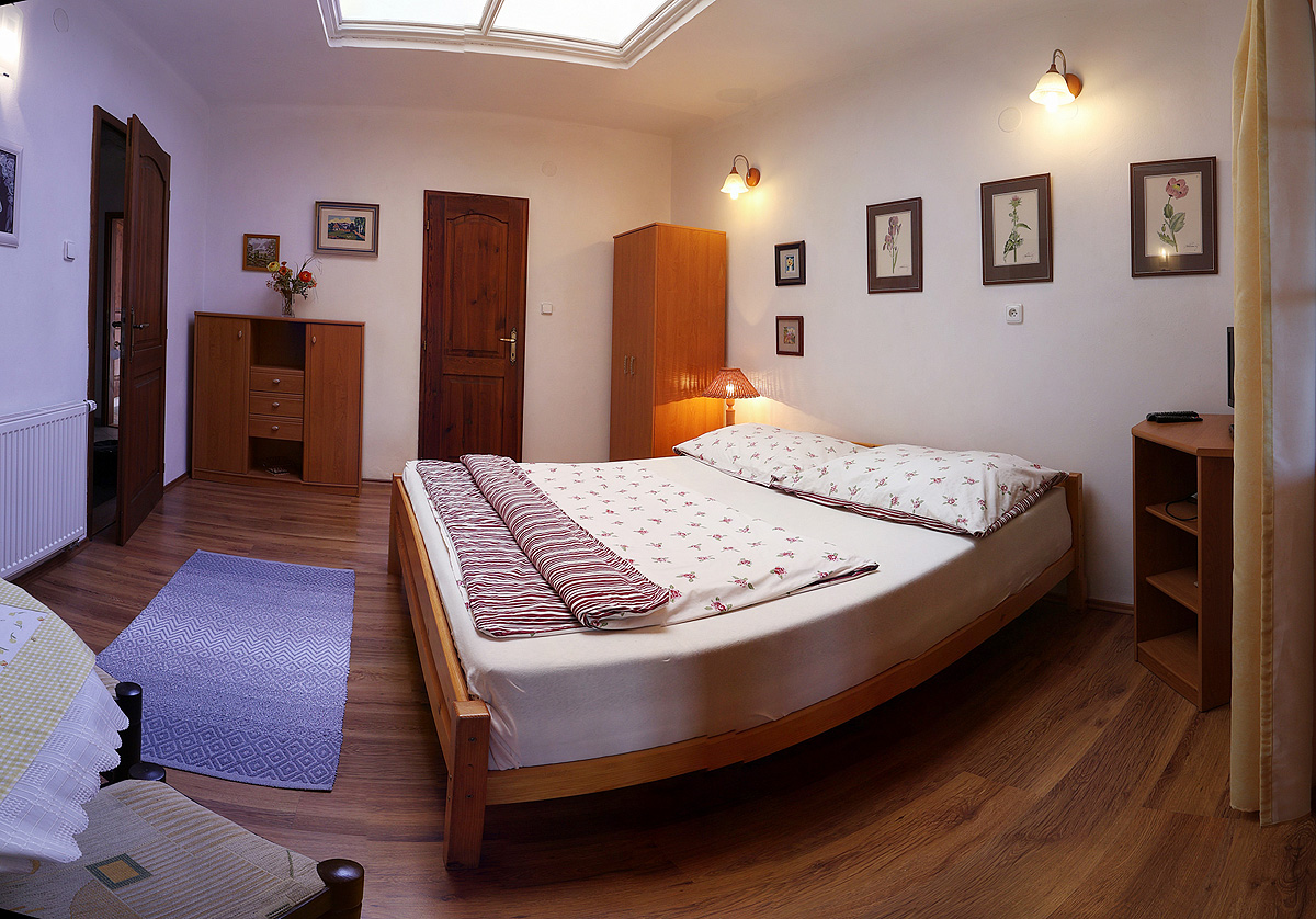 pokoj s manželskou postelí či 2 oddělenými lůžky s možností 1 přistýlky, sociální zařízení se sprchou (u jednoho pokoje navíc i vana)