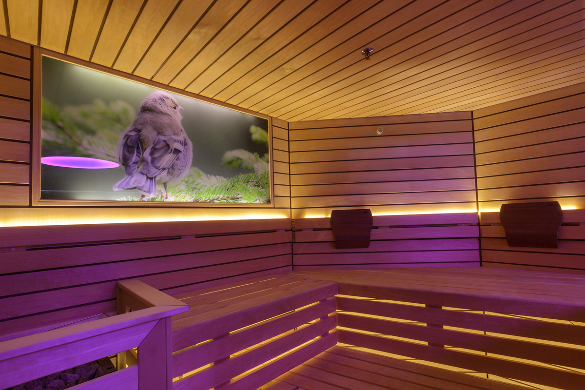 bazén, vířivka, sauna, pára, multifunkční sprcha, relaxační koutek s lehátky, posilovna