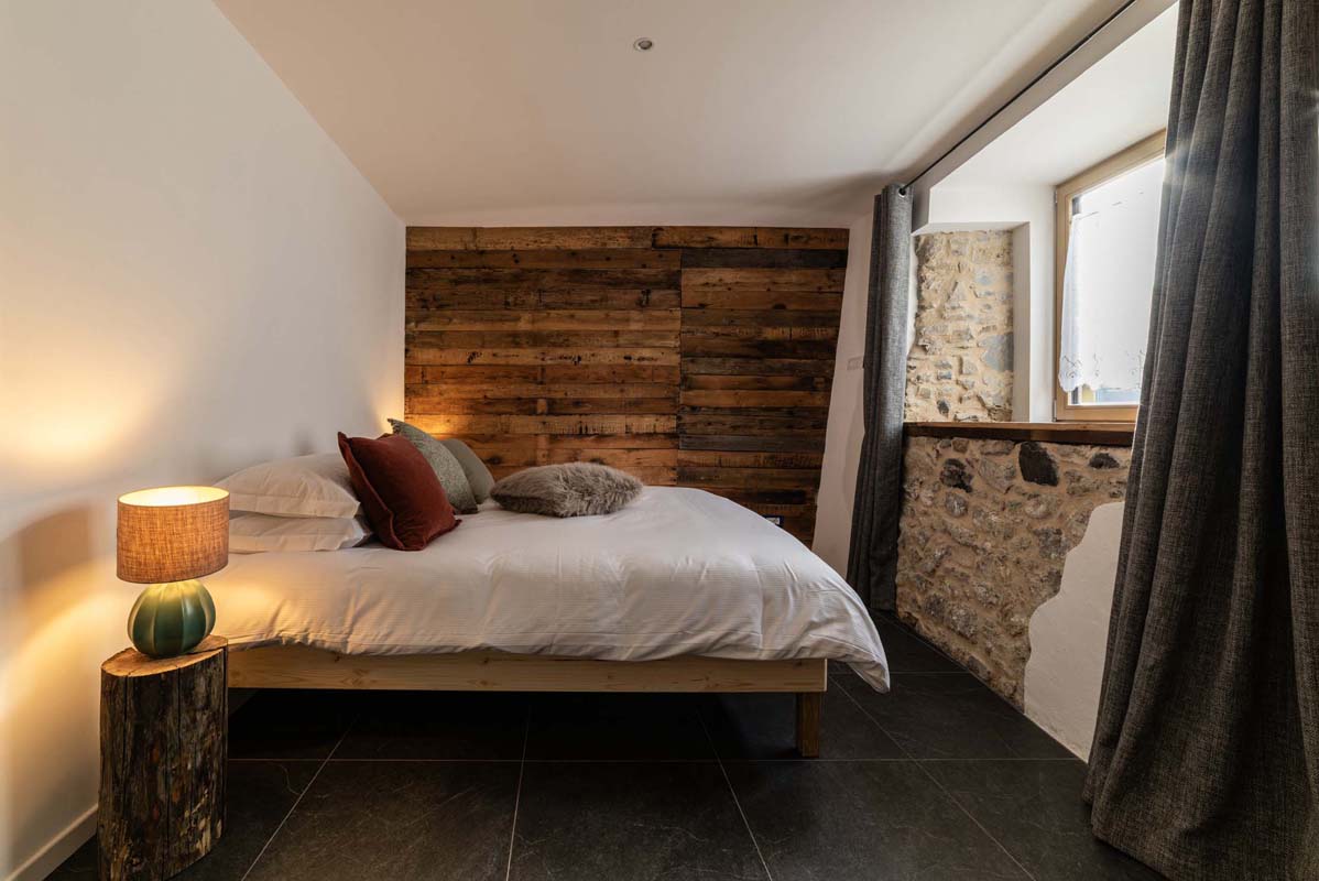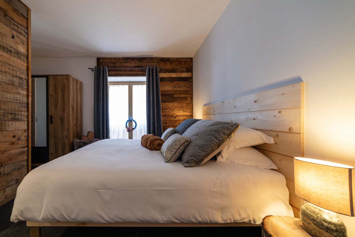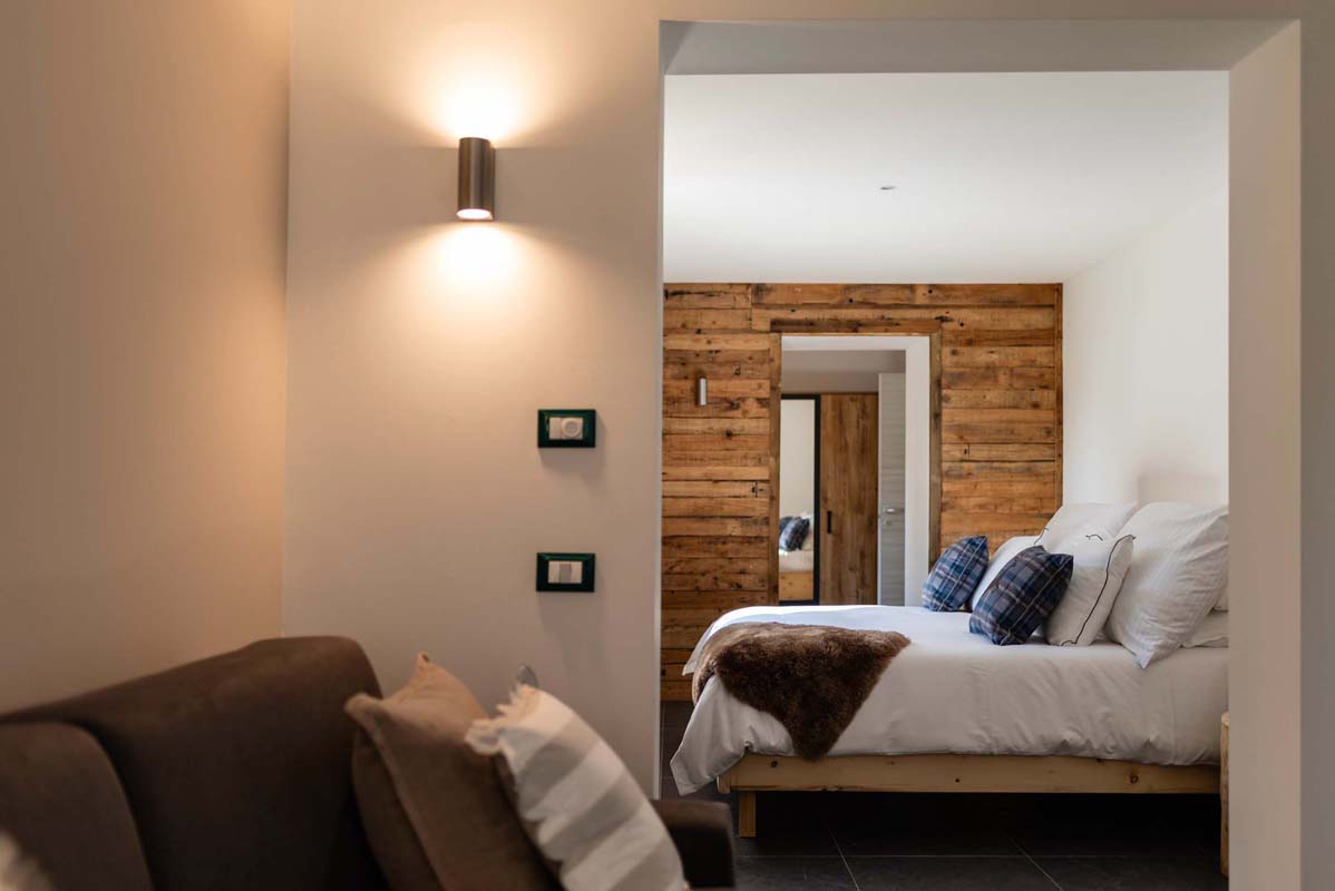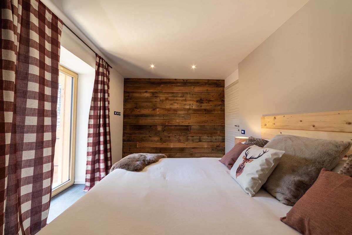49 m² - 1 ložnice s manželskou postelí, malá ložnice s 1 samostatný lůžkem (90x200), obývací pokoj s kuchyňským koutem a rozkládacím gaučem (160x200), v rámci neuzavřeného vyvýšeného patra malá ložnice s gaučem pro 1 osobu, sociální zařízení se sprchovým koutem typu walk-in, 2x balkon; apartmán se nachází ve druhém patře