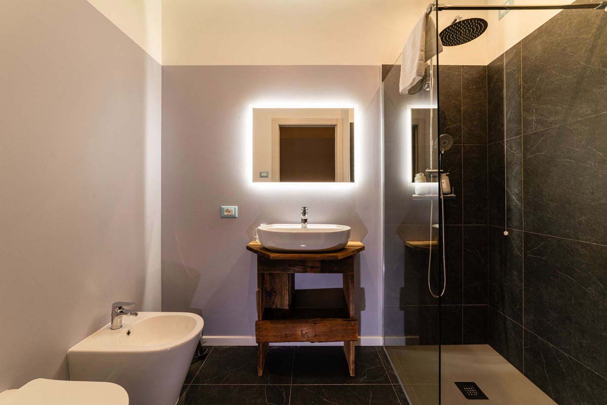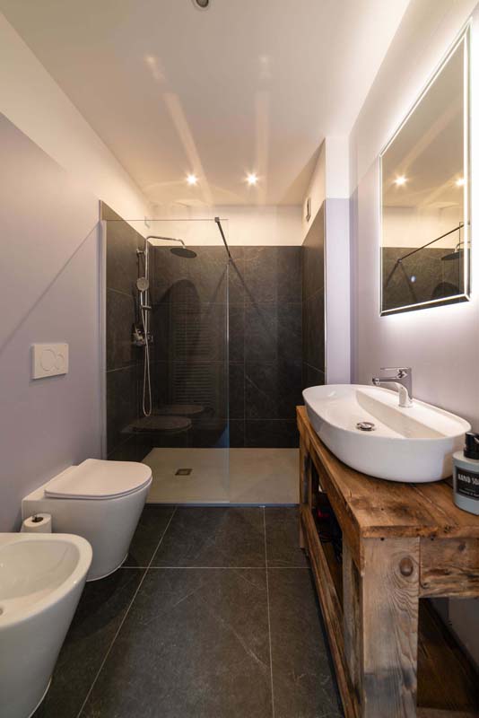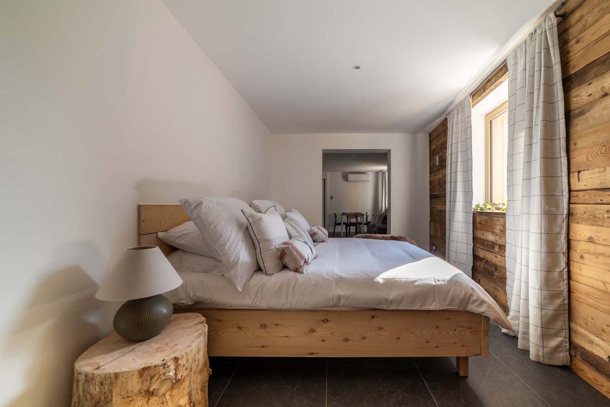 62 m² - 1 ložnice a manželskou postelí, 1 ložnice s 1 samostatným lůžkem, obývací pokoj s kuchyňským koutem a rozkládacím gaučem pro 2 osoby (160x200), 2x sociální zařízení se sprchovým koutem (pouze 1x sprchový kout typu walk-in); apartmán se nachází v přízemí