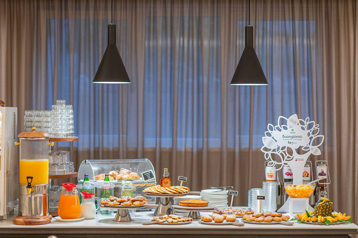 TV sat., klimatizace, telefon, trezor, fén, nápojová lednička a vraná konvice (pouze typologie Junior Suite 2/3/4), wi-fi připojení k internetu