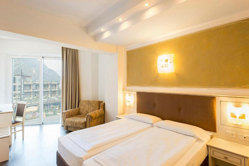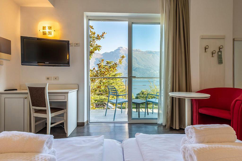 17 m² - pokoj s manželskou postelí či 2 samostatnými lůžky, sociální zařízení se sprchou, balkon; 3. lůžka zpravidla pevná či formou přistýlky - pokoj s manželskou postelí, sociální zařízení, balkon s výhledem na jezero; 3. lůžka zpravidla pevná či formou přistýlky