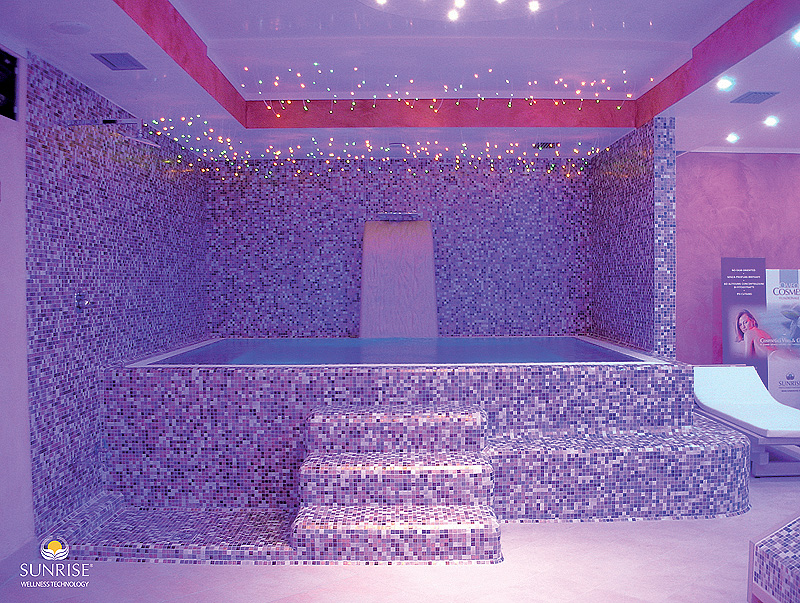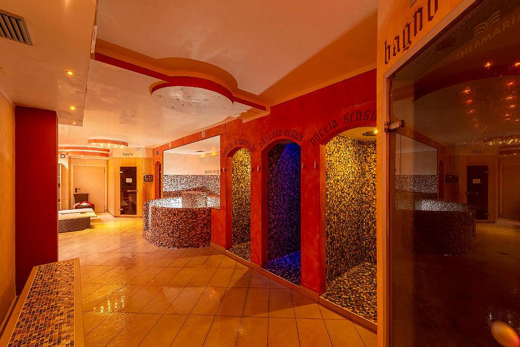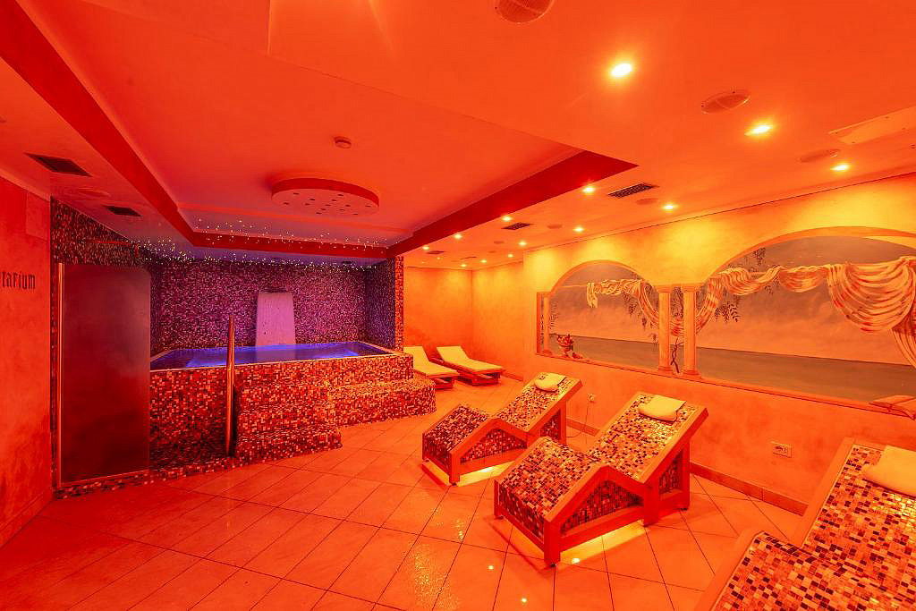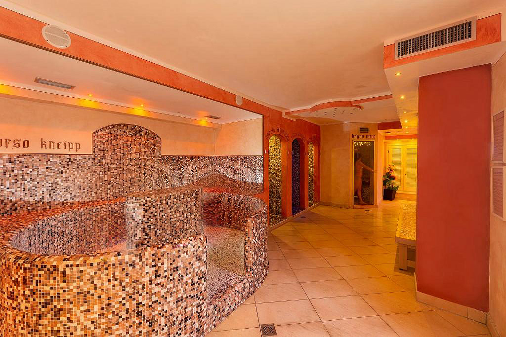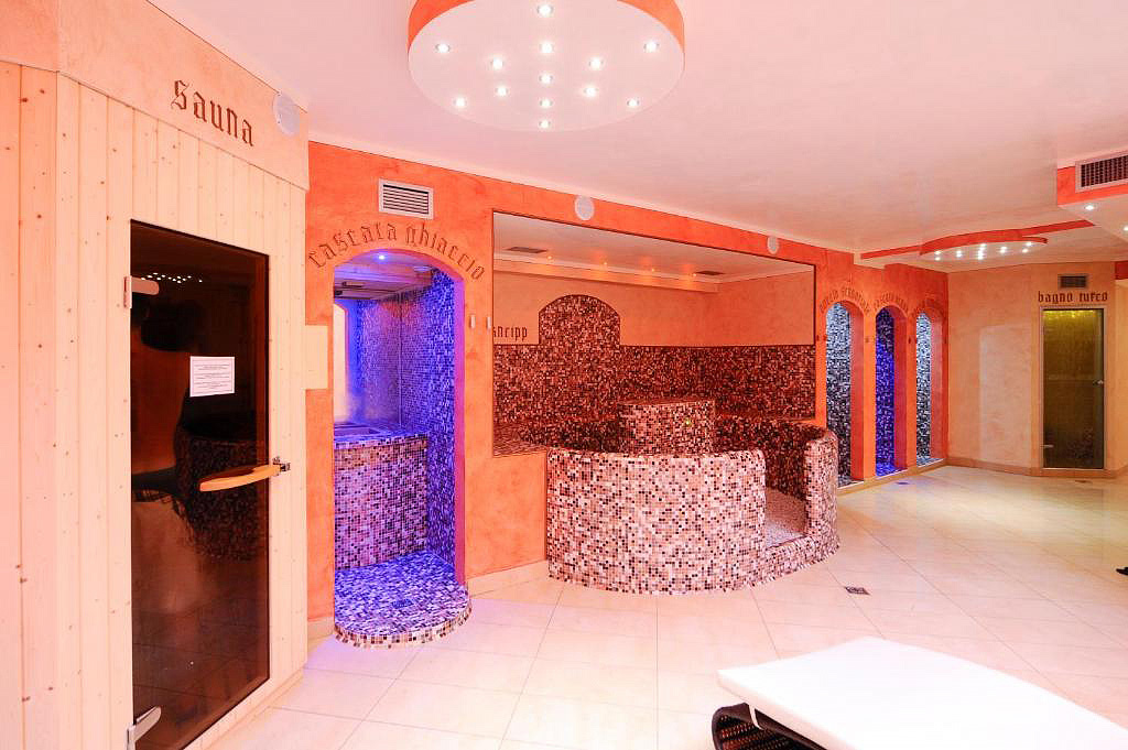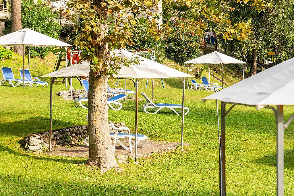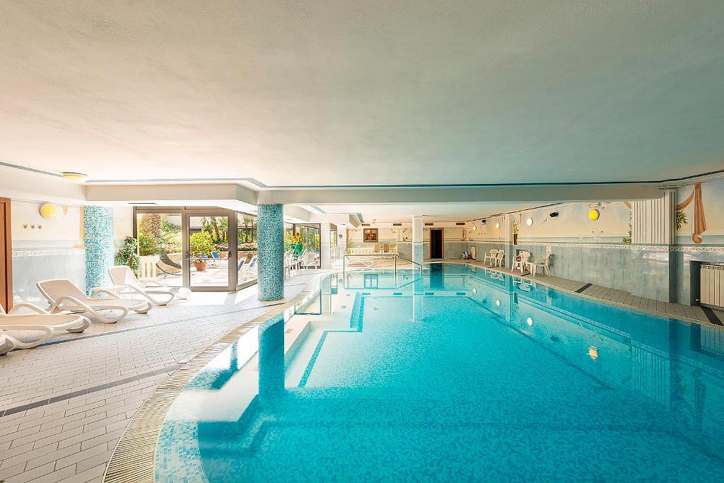 nabídka Hotelu Garda Bellevue **** - venkovní bazén 15 x 7 m s lehátky a slunečníky, vnitřní bazén 16 x 7 m, dětský bazén 5 x 3 m, vířivka*#, finská sauna*#, pára*#, Kneippův chodník*#; služby označené # mohou využívat osoby starší 15 let