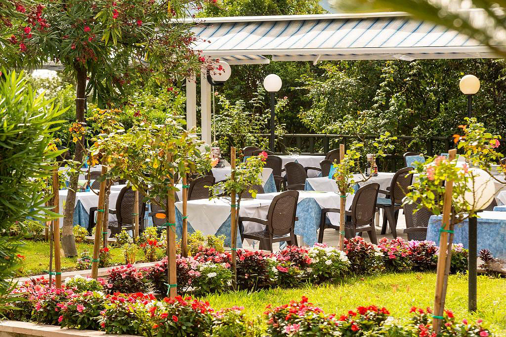 recepce, restaurace, pizzerie, bar, zahrada se slunečníky a lehátky, sluneční terasa s posezením, dětské hřiště, výtah, půjčovna jízdních kol* (ve vzdálenosti 1 km), vyhrazené parkoviště (počet míst omezen), garážová stání* (ve vzdálenosti 150 m), wi-fi připojení k internetu