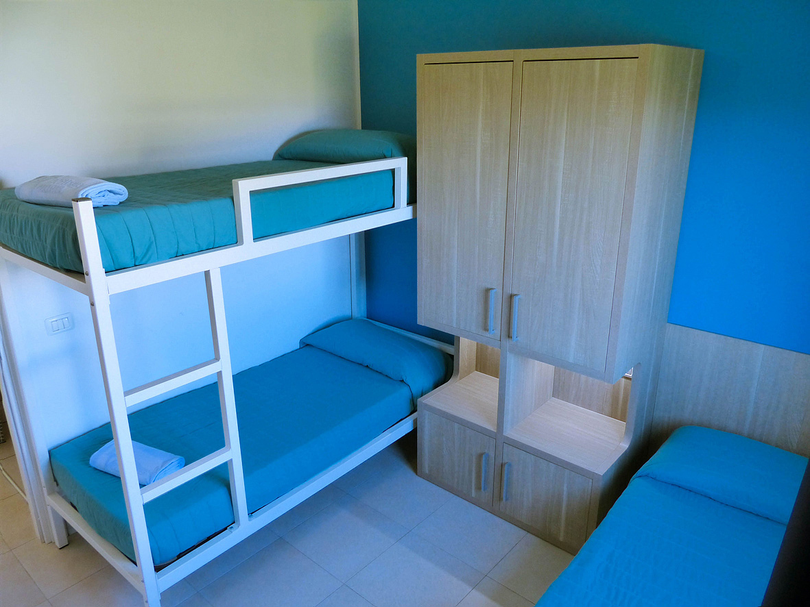 35 m² - 1 ložnice s manželskou postelí, 1 ložnice se 2 samostatnými lůžky či palandou, obývací pokoj s kuchyňským koutem a rozkládacím gaučem pro 2 osoby, sociální zařízení se sprchou, malý balkon; zpravidla první patro