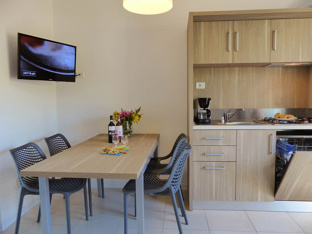 v ceně této typologie následující služby a vybavení: ochutnávka vín na uvítanou při příjezdu, úklid apartmánu každé dva dny (kromě kuchyňského koutu), osušky k bazénu, fén