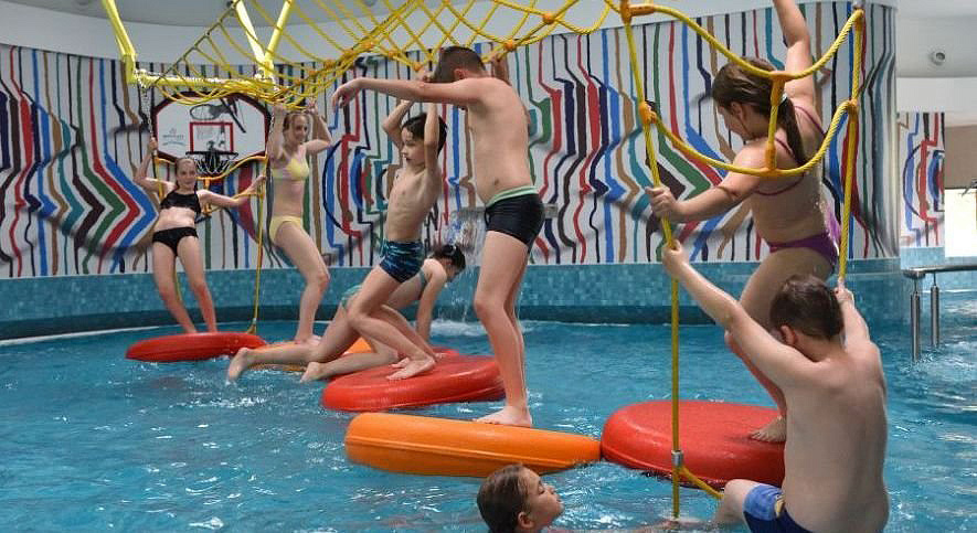 venkovní plavecký bazén s lehátky, venkovní dětský bazén, krytý plavecký bazén, s lehátky krytý dětský bazén, vířivka#, sauna#, bio sauna#, pára#, relaxační koutek#, kosmetické služby*, masáže*, posilovna, skupinové sportovní programy, tenisové kurty*, minigolf*, stolní tenis, biliard, kosmetické služby*, masáže*; služby označené # nejsou přístupné dětem do 17 let