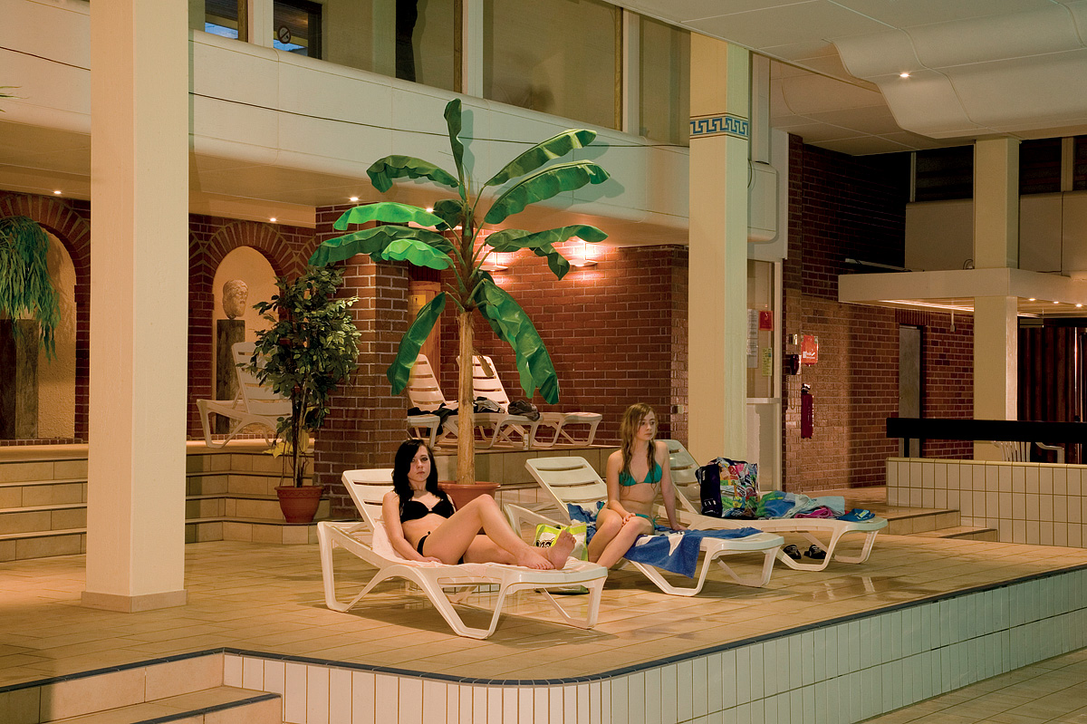 vodní svět o velikosti 1.500 m² - krytý bazén s protiproudem a vodopádem, venkovní bazén, dětský bazén, finská sauna*, biosauna*, relaxační koutek s lehátky*, masáže*, kosmetické služby*, velká posilovna*, sál pro aerobik s programem*, minigolf, boccia