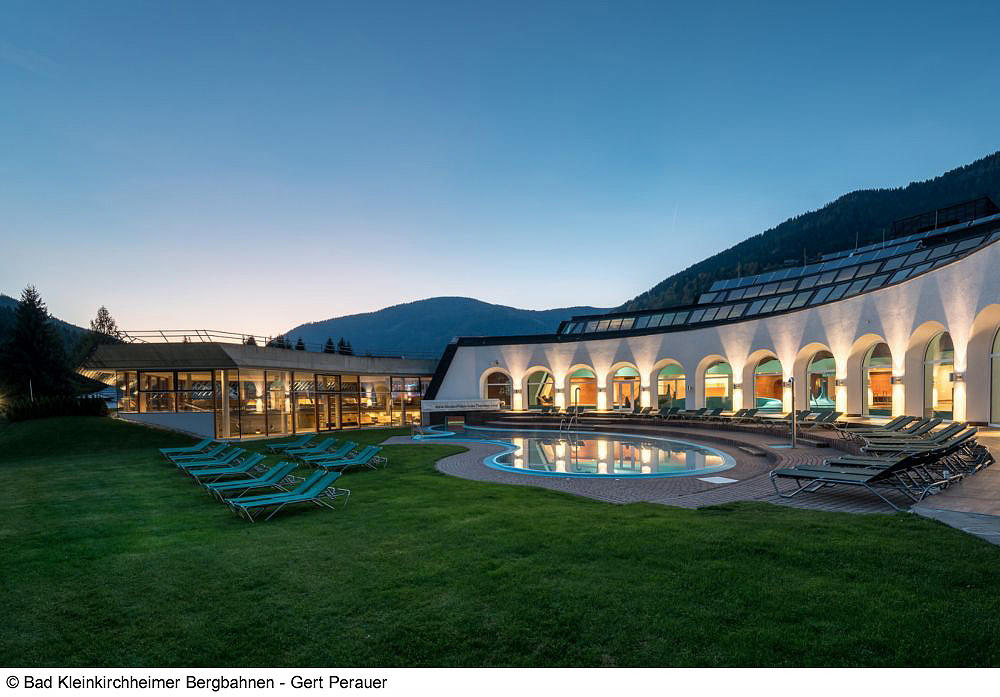 platí pro lyžařský areál Bad Kleinkirchheim; umožňuje ve stejný den lyžovat i navštívit lázně (na 4 hodiny, mezi 10:00–21:00, pá+so do 22:00; sauna za příplatek)