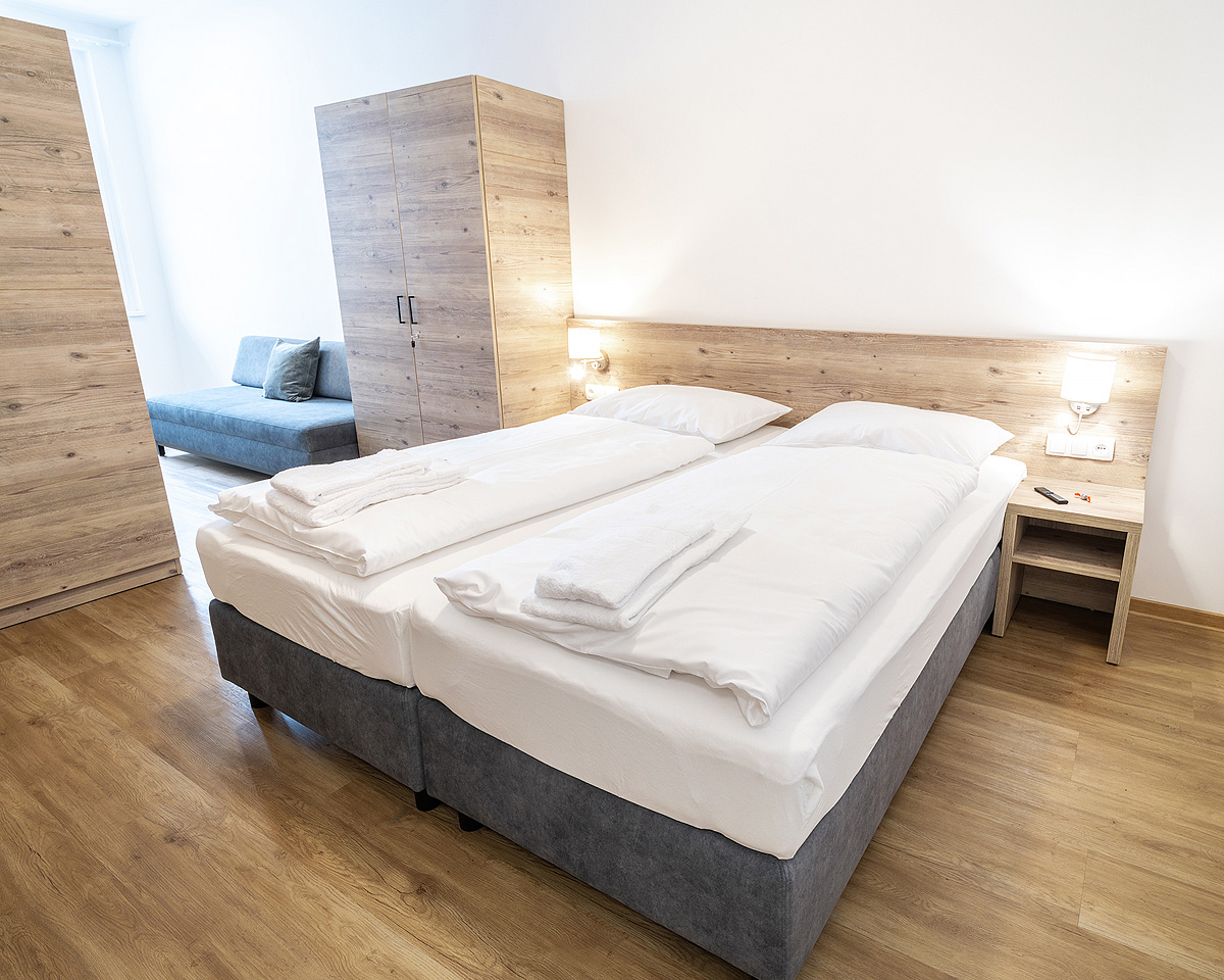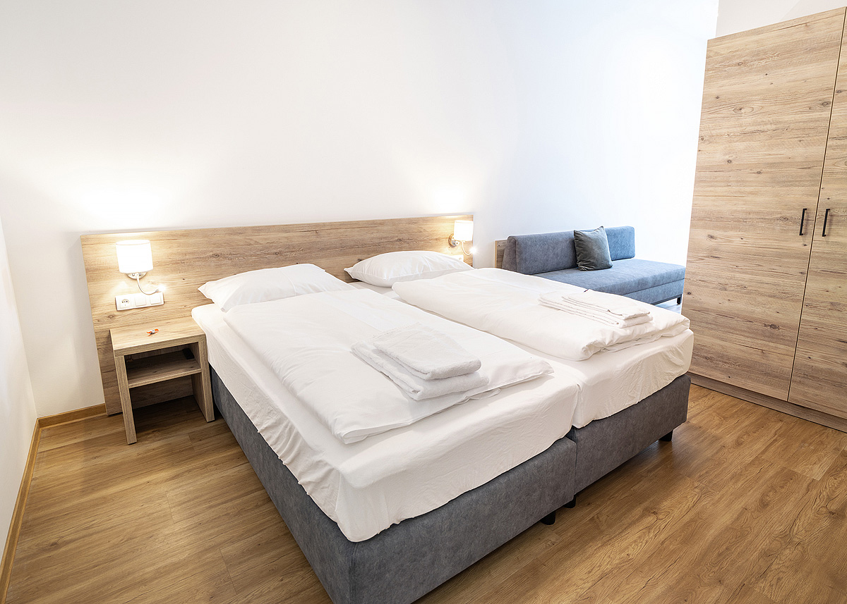 83 m² - ložnice s manželskou postelí, ložnice s 2 samostatnými lůžky, ložnice s manželskou postelí a gaučem pro 1 osobu, obývací pokoj s kuchyňským koutem, 2x sociální zařízení, balkon