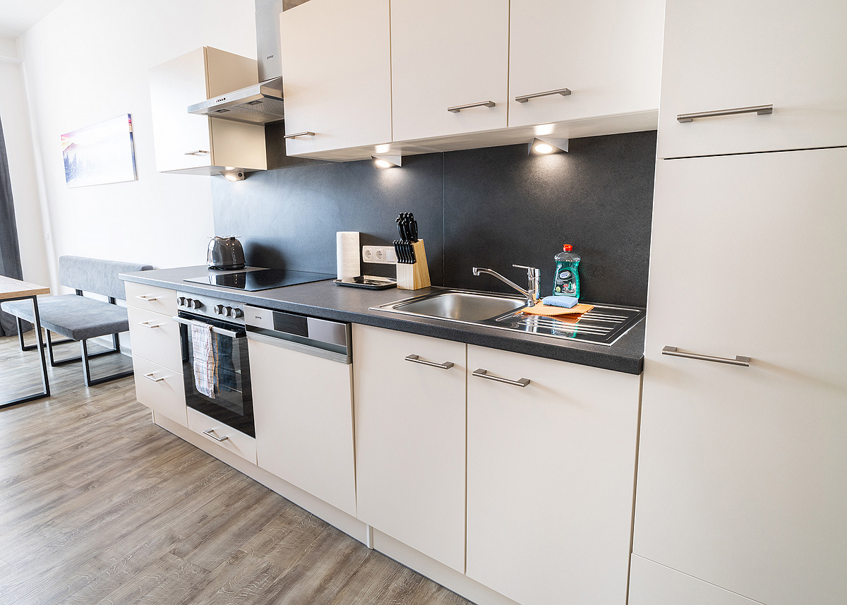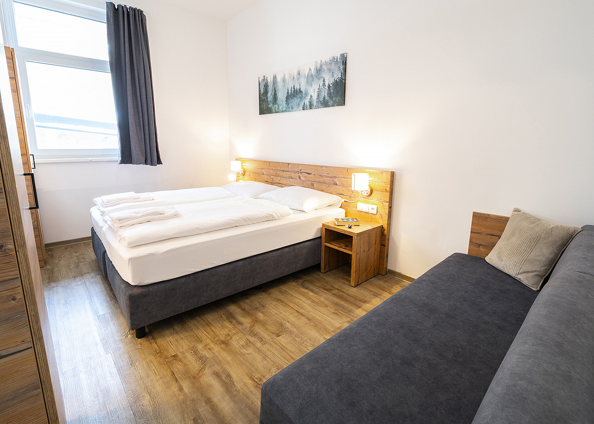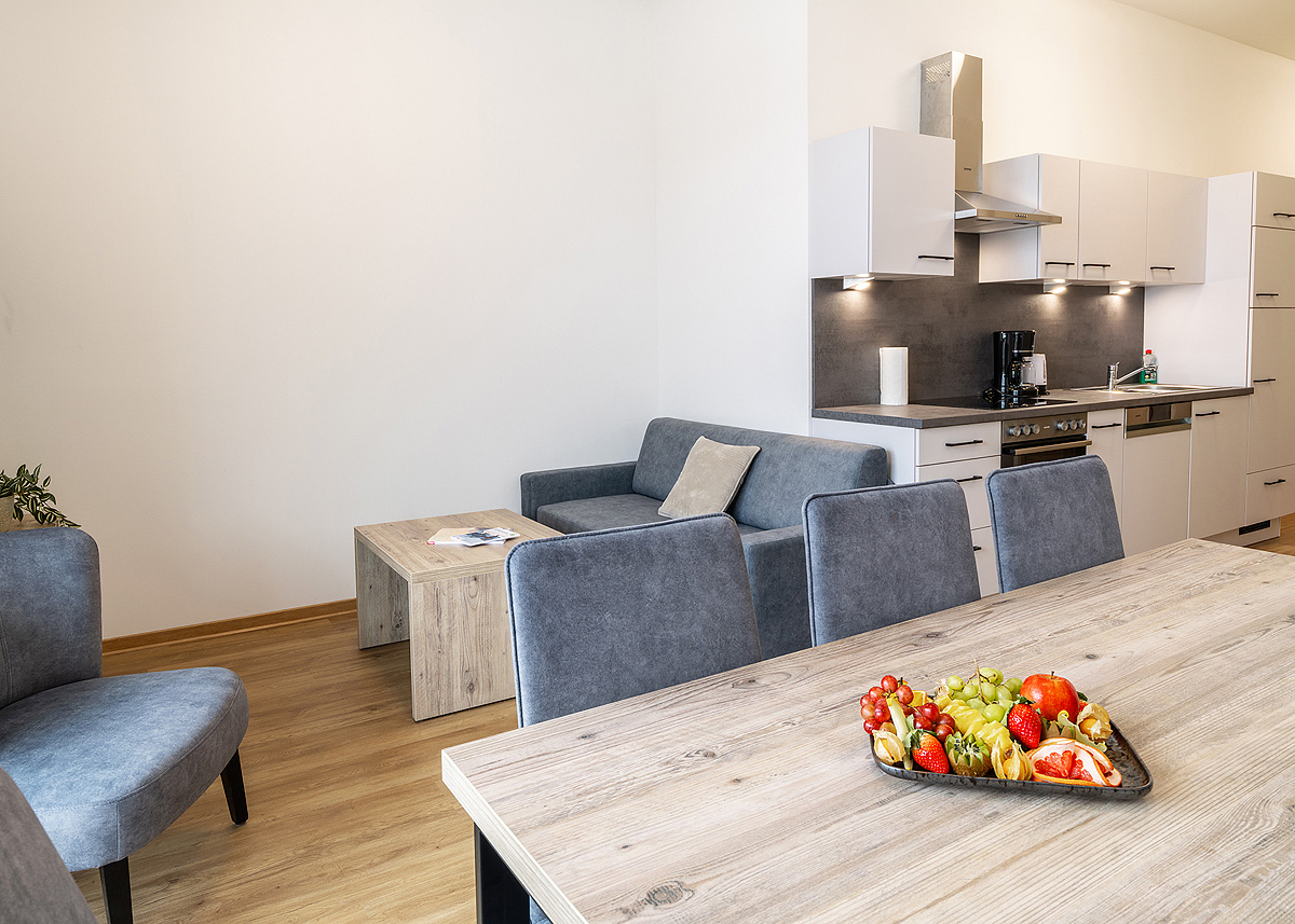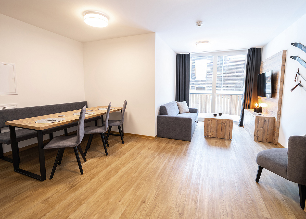 72 m² - 2x ložnice s manželskou postelí a gaučem pro 1 osobu, obývací pokoj s kuchyňským koutem, 2x sociální zařízení, balkon