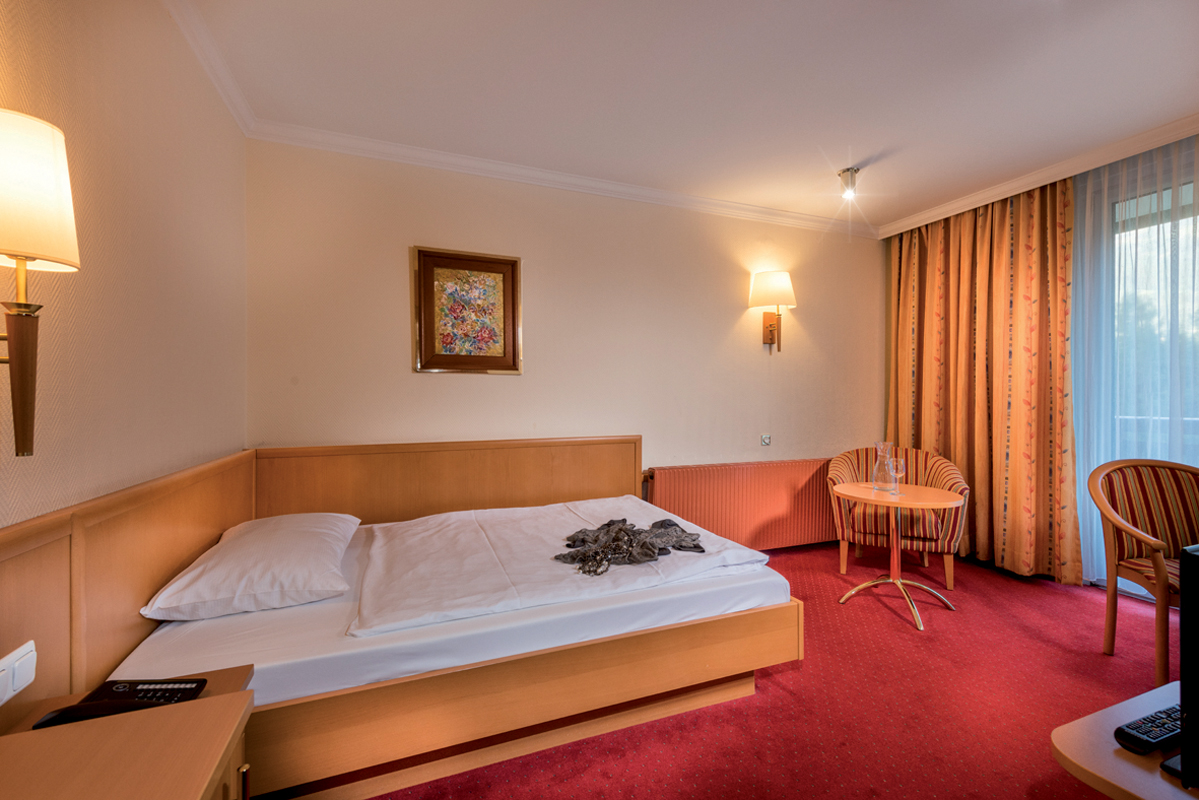 18 m² - pokoj s manželskou postelí pro 1 dospělou osobu a případně 1 dítě do nedovršených 15 let, sociální zařízení se sprchou či vanou, balkon; infant nad rámec maximální obsazenosti pokoje není povolen!
