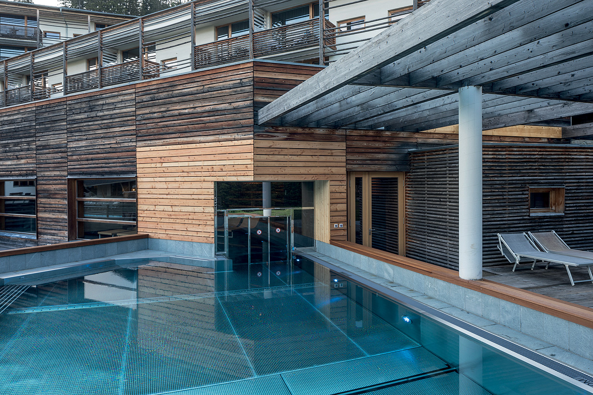 Acquapura SPA o velikosti 2.000 m² - krytý bazén propojený s venkovním vyhřívaným bazénem, dětský bazén s tobogánem, vířivka, finská sauna, bio sauna, aromatická pára, ledová lázeň, horizontální solárium*, relaxační koutek s lehátky, Kneippův chodník, posilovna, sál pro aerobic s programem, vodní gymnastika, vnitřní umělá lezecká stěna pro děti, šipky, stolní tenis, stolní fotbal, biliár*; masáže*, kosmetické služby*