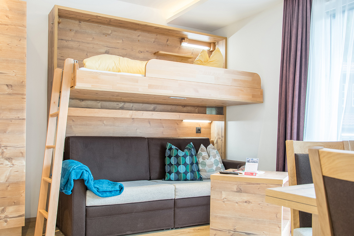 50 m² - ložnice s manželskou postelí a přistýlkou pro 1 osobu, obývací pokoj s kuchyňským koutem a rozkládacím gaučem pro 1 osobu, sociální zařízení, odělené WC, balkon; minimální obsazenost pokoje jsou 4 osoby