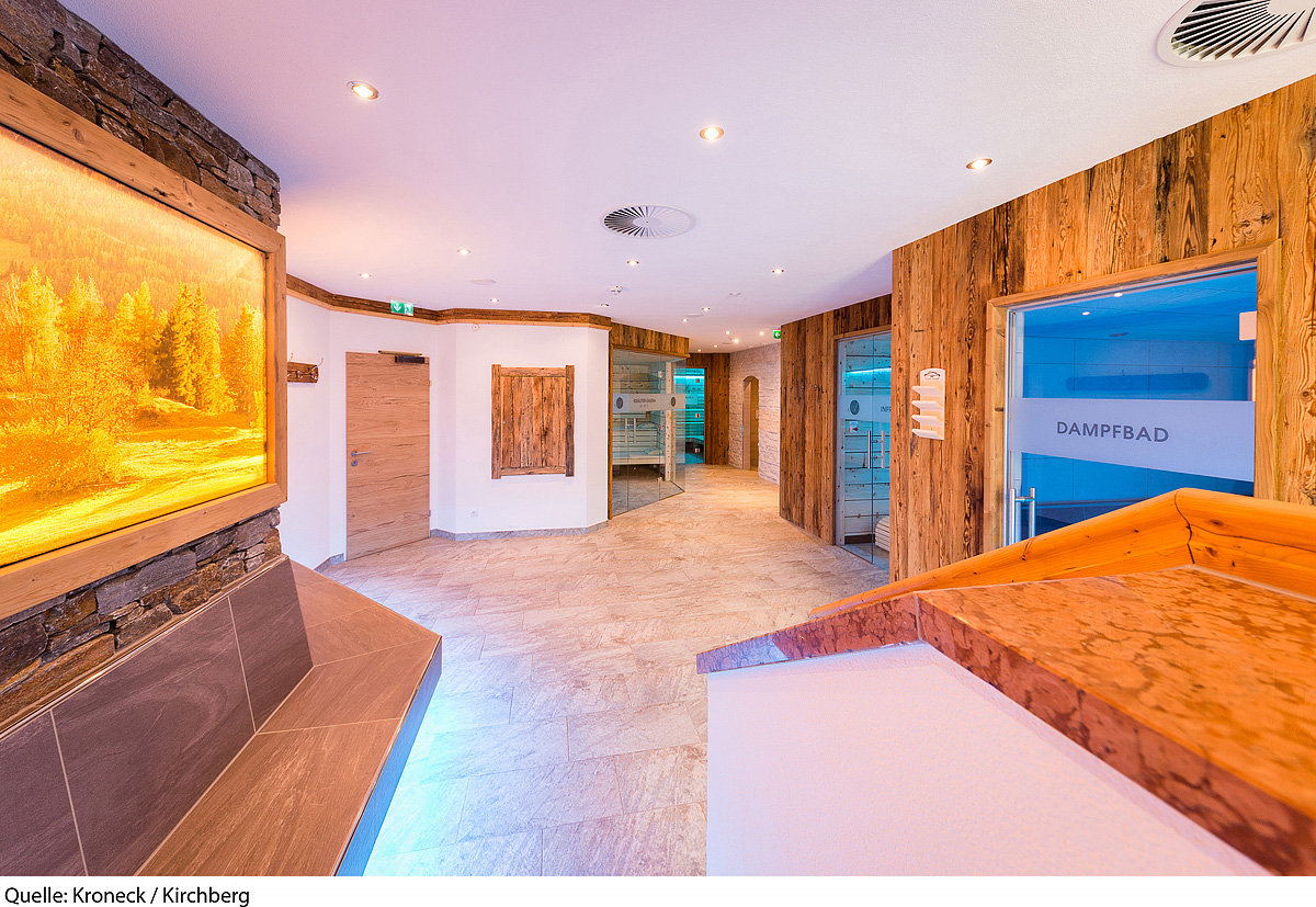 recepce / lobby, restaurace vyhrazená pro hotelové hosty / bar, restaurace à la carte, typická rakouská pivnice, kavárna, společenská místnost s TV, wi-fi připojení k internetu, sluneční terasa s posezením, zimní zahrada, dětský koutek s TV, úschovna kol, 3x výtah, vyhrazené parkoviště, garážová stání*