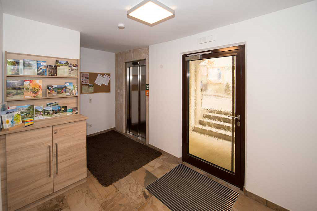 malá recepce / lobby, wi-fi připojení k internetu, výtah, vyhrazené parkoviště, úschovna jízdních kol
