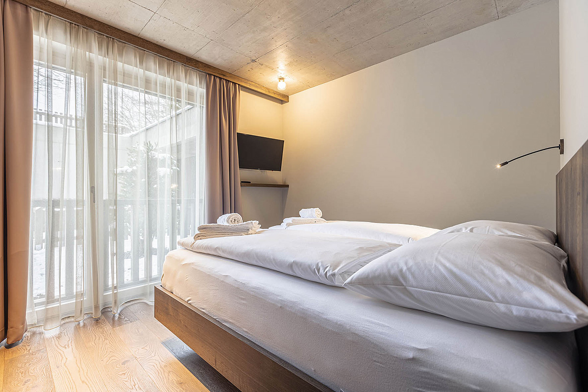 65 m² - 2x ložnice s manželskou postelí, obývací pokoj a kuchyňským koutem, sociální zařízení, separátní WC, privátní sauna, terasa