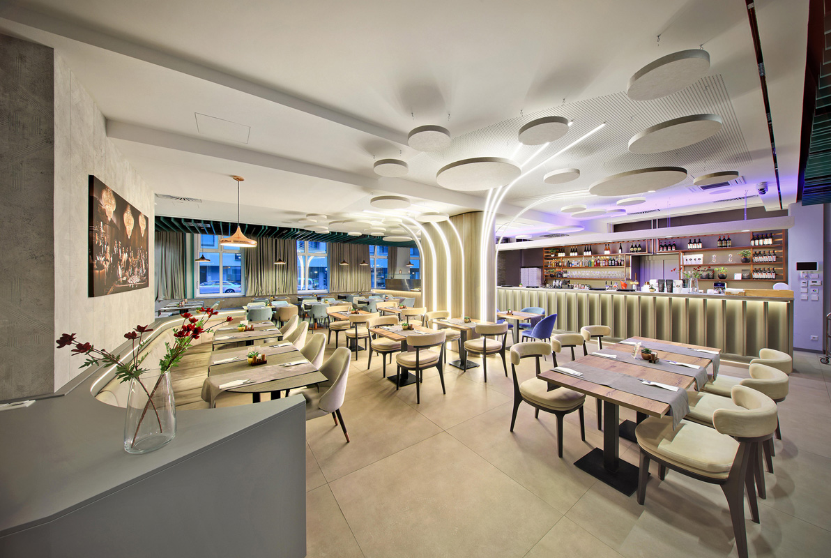 recepce / lobby, snídaňová restaurace vyhrazená pro hotelové hosty, restaurace, bar, wi-fi připojení k internetu, sluneční terasa s posezením, místnost na úschovu zavazadel, výtah, garážová stání*, nabíjecí stanice elektroaut*
