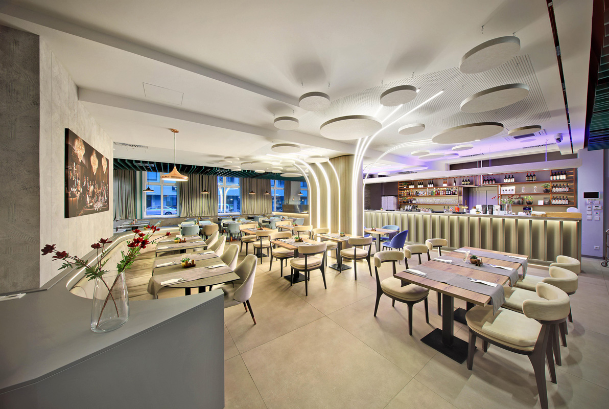 recepce, snídaňová restaurace vyhrazená pro hotelové hosty, restaurace à la carte, bar, výtah, wi-fi připojení k internetu, veřejné parkování*