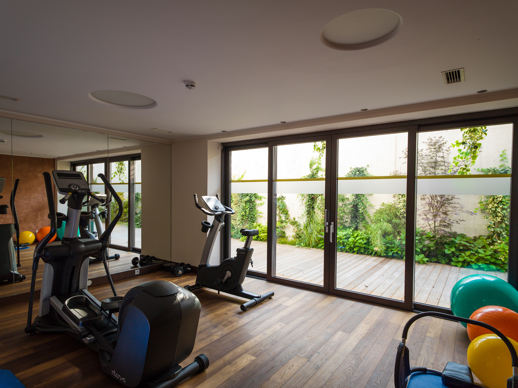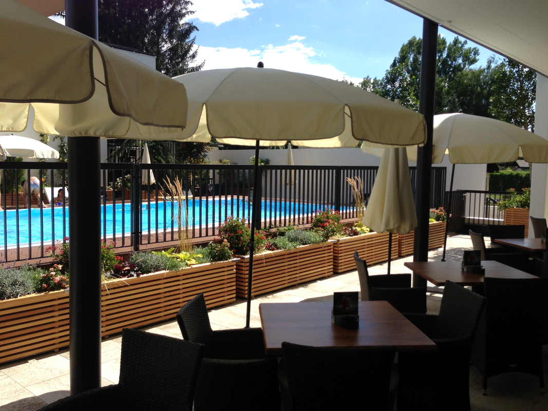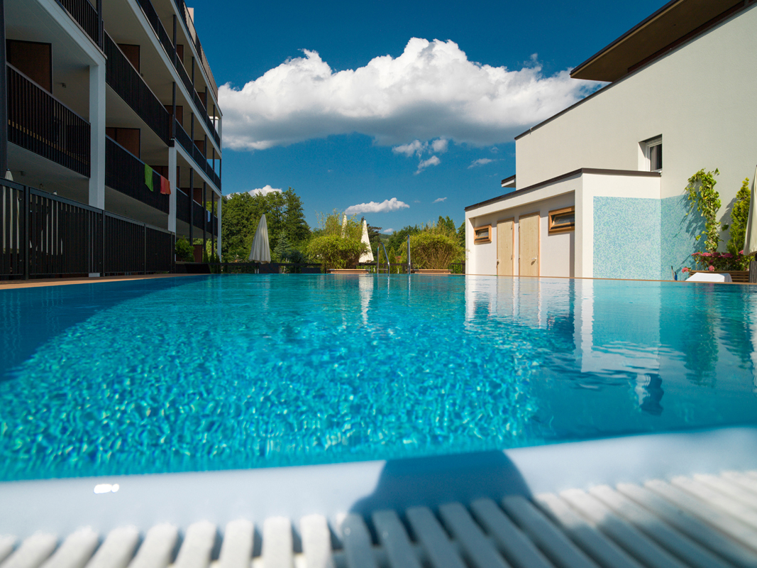 recepce, terasa s posezením, výtah, garážová stání (1 zdarma / apartmán), vyhrazené parkoviště, wi-fi přípojení k internetu, hotelová pláž / zahrada s lehátky a přímým vstupem do jezera (ca. 100 m)