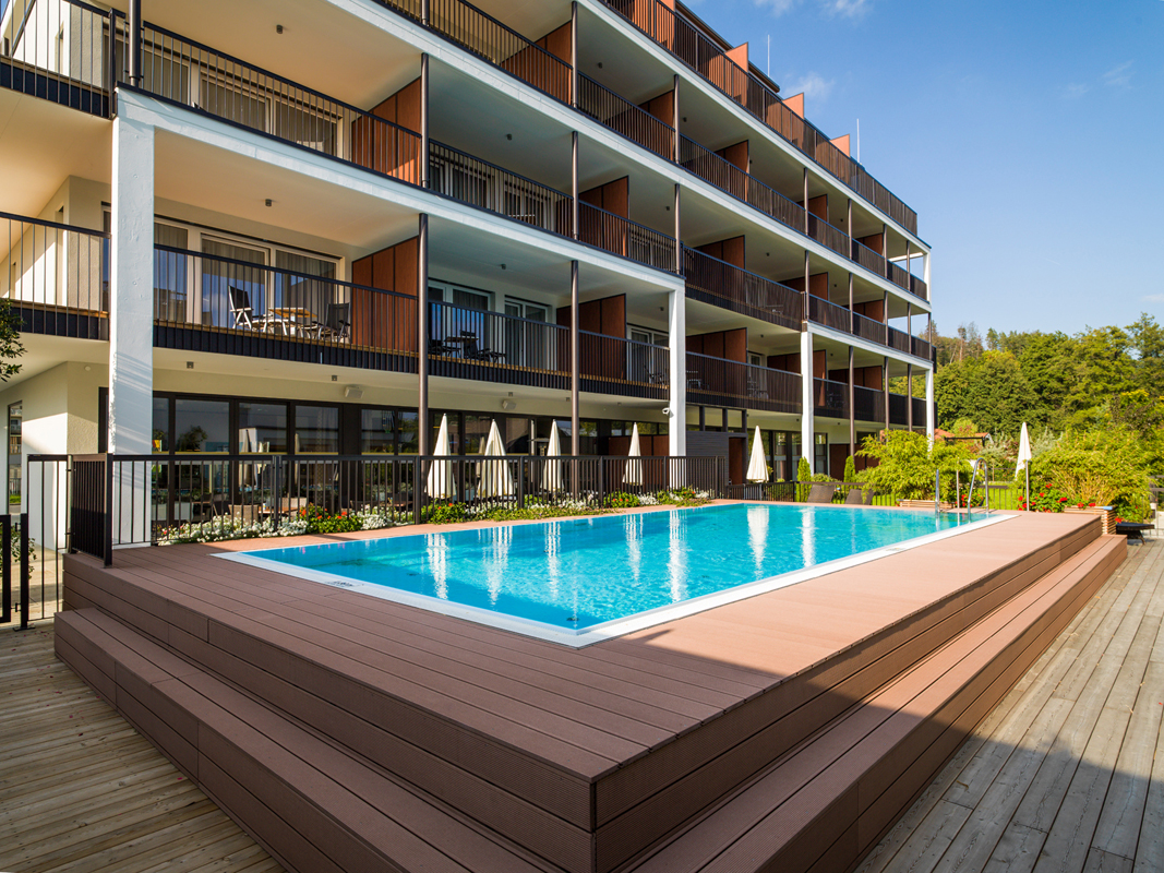 modermí apartmánový resort umístěný téměř na břehu jezera Wörthersee
