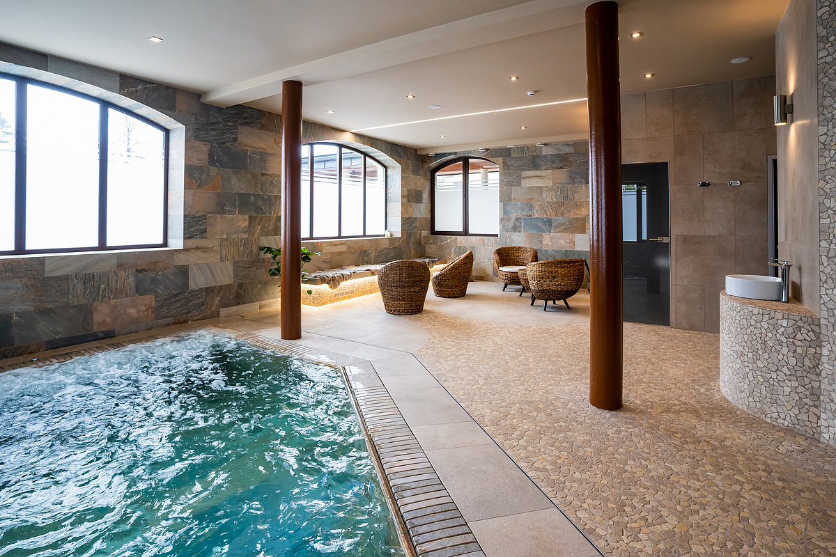 relaxační bazén s teplotou 34 °C, finská sauna, aromatická sauna, parní sauna, (privátní sauna), tepidarium, masáže*