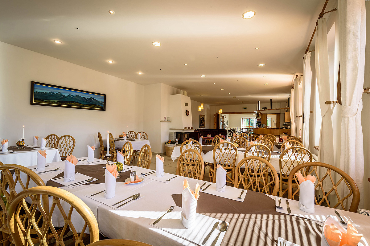 50 m² – luxusní mezonetový apartmán; ložnice s manželskou postelí a 2 pevnými lůžky, obývací pokoj s gaučem, sociální zařízení, balkón s výhledem na hory