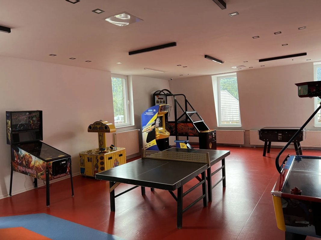 recepce, restaurace, bar, konferenční sál až pro 100 osob, úschovna lyží a kol, místnost pro úschovu zavazadel, výtah, dětská herna, vyhrazené parkoviště, wi-fi připojení k internetu