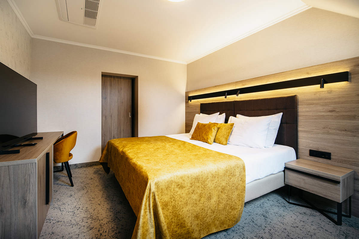 klimatizace, TV sat, telefon, fén, mini chladnička, wi-fi připojení k internetu, župan, pantofle a osuška (pouze pro dosp.), rychlovarná konvice