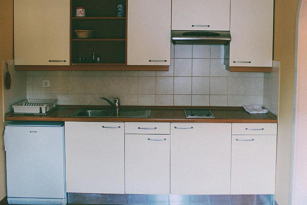plně vybavený kuchyňský kout (varná deska, lednice, mikrovlnná trouba, myčka nádobí, rychlovarná konvice na vyžádání), topení / klimatizace, TV, telefon, wi-fi připojení k internetu, fén, ložní prádlo, ručníky, utěrky