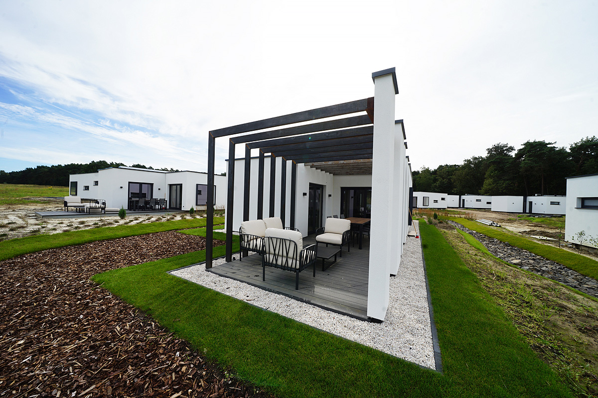 trilo 4 Kempen Cottage - bungalov, 2 ložnice buď se 2 samostatnými lůžky nebo s manželskou postelí, obývací pokoj s kuchyňským koutem, sociální zařízení, terasa se zahradním nábytkem, max. obsazenost pro 4 osoby