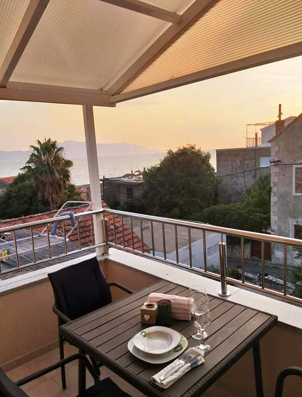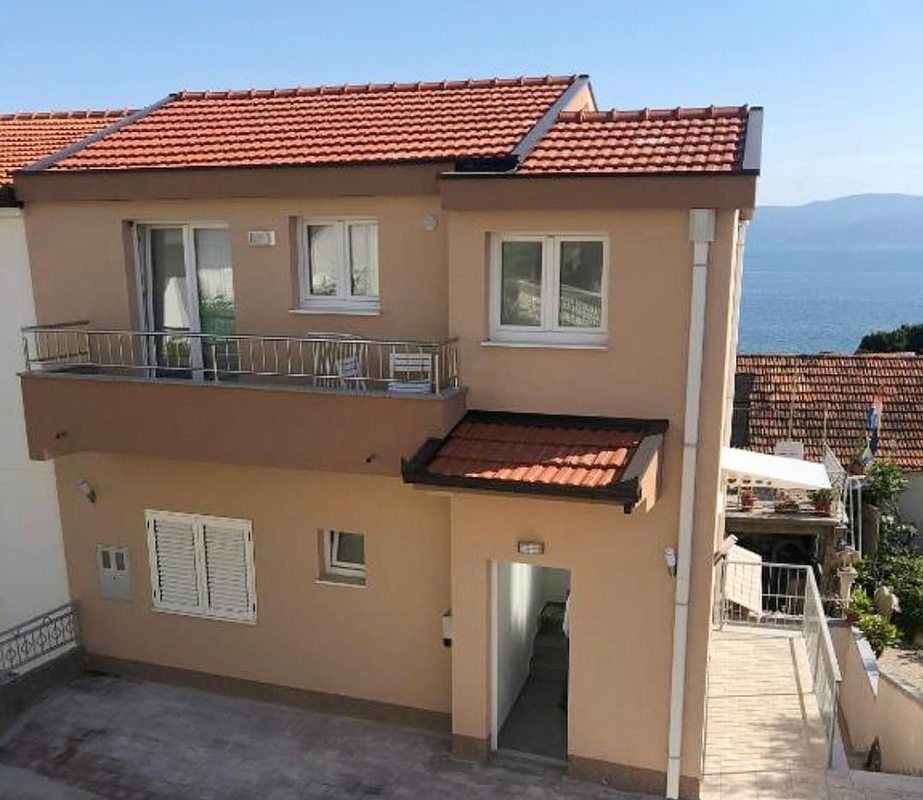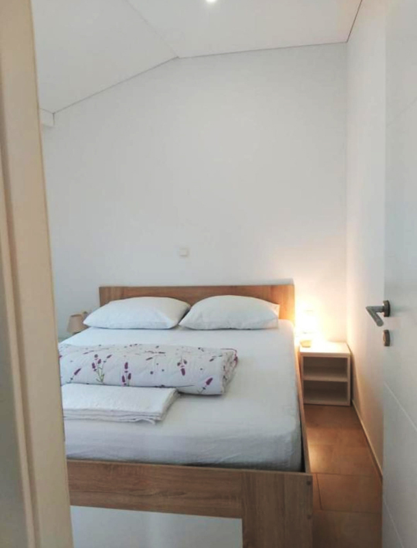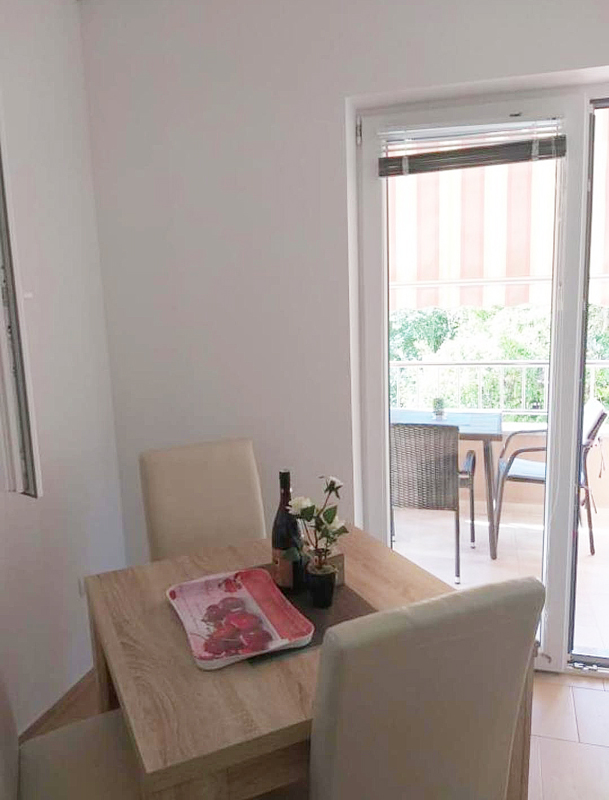 ložnice s manželskou postelí, obývací pokoj s vybaveným kuchyňským koutem a přistýlkou formou rozkládacího gauče pro jednu dospělou osobu nebo dvě děti do nedovršených 12 let, sociální zařízení se sprchou, sociální zařízení se sprchou, dva balkony - jeden orientovaný do ulice, druhý balkon s výhledem na moře