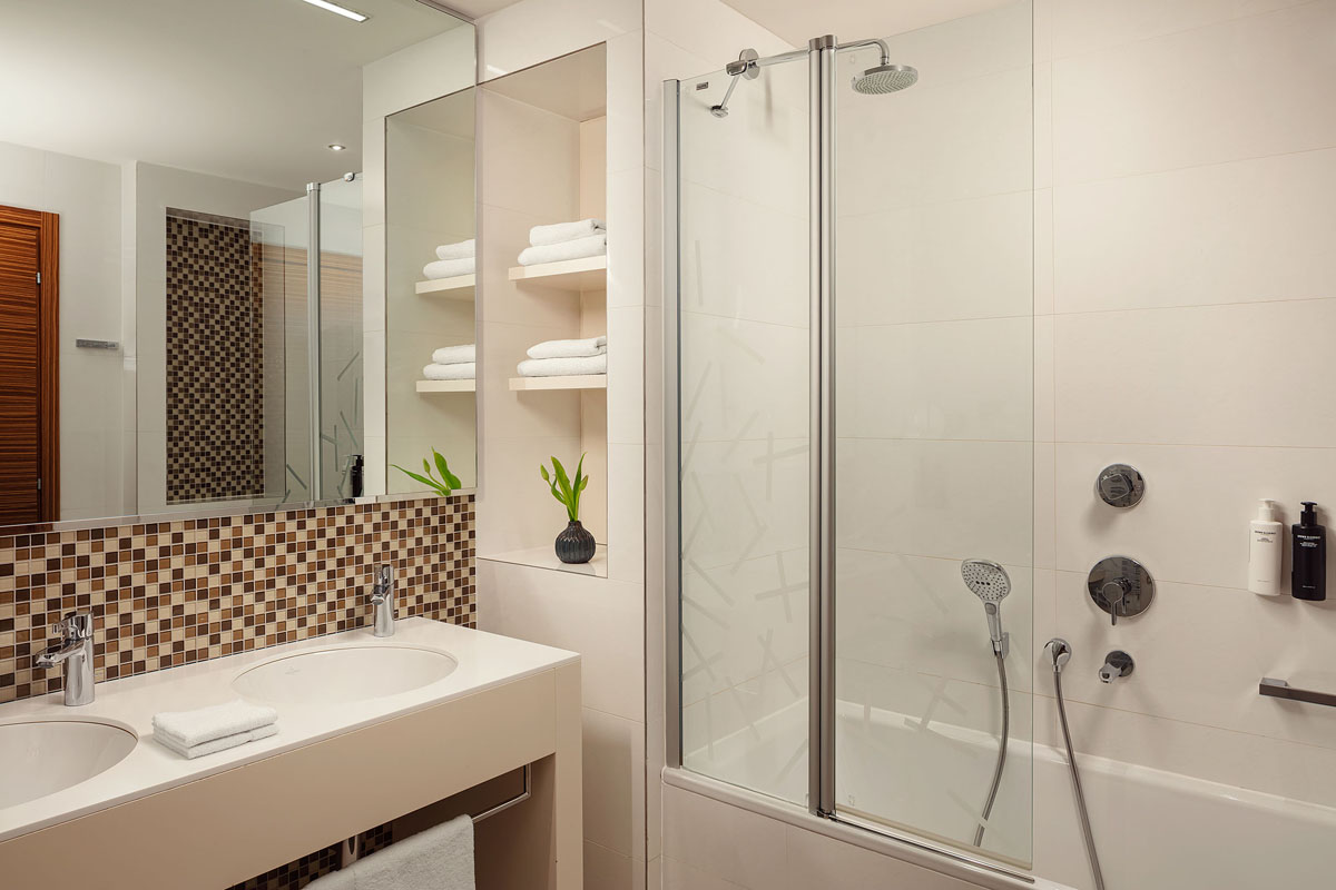 klimatizace, TV sat., trezor, minibar*, fén, set na přípravu kávy a čaje, župan a papuče, wi-fi připojení k internetu