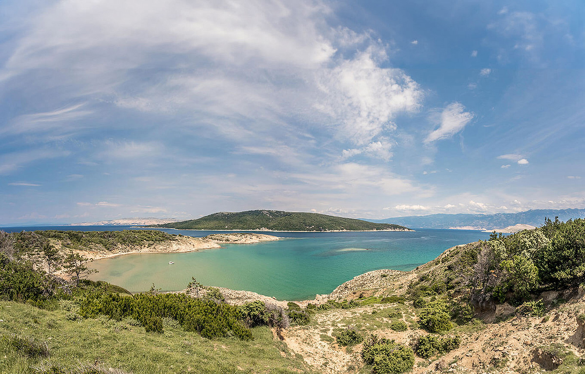 Ostrov Rab, lokalita Lopar, pláž / písečná – 50–200 m (záleží na umístění MH), letiště Rijeka – 120 km, Zadar – 150 Km