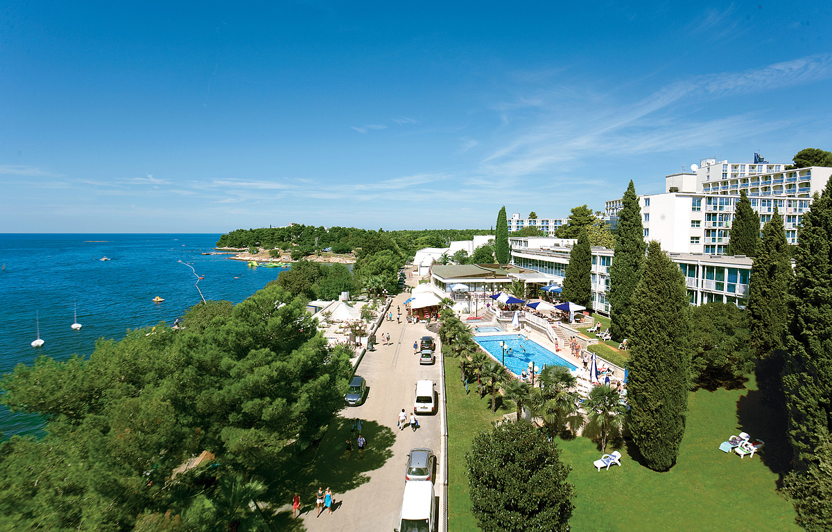 Poreč, centrum - 5 km, pláž / oblázková a skalnatá, místy s betonovými platy - 30 m, letiště Pula – 60 km