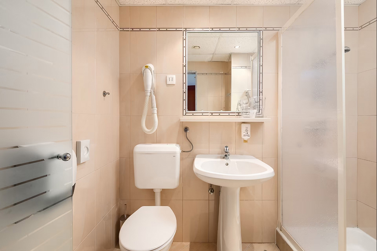 cca 16 m² - pokoj pro 1 osobu, sociální zařízení se sprchou s pohledem na ulici