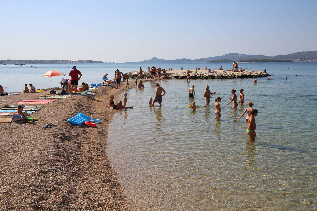 Sveti Filip i Jakov, centrum - 100 m, písčitá a oblázková – 150 m