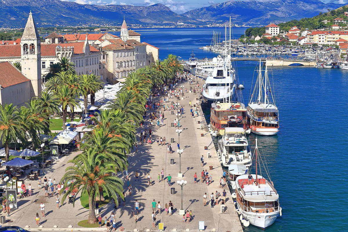 Mezi 13:00 a 14:00 nalodění v přístavu Trogir. Možnost parkování (za poplatek), převoz zavazadel k lodi. Následuje setkání s průvodcem včetně welcome drinku, seznámení se s posádkou a svými spolucestujícími. Po ubytování vyplouvá loď do zátoky na ostrově Čiovo, kde máme možnost užít si první koupání v křišťálově čistých vodách Jadranu. Cílem prvního dne plavby je Split. Hlavní dominantou Splitu je staré centrum města, které bylo postaveno na místě Diokleciánova paláce. Komplex zapsaný na seznamu světového dědictví je domovem 1700 let starých římských hradeb, obytných budov, kostelů, kaváren... Večer máte volno na procházku starým městem.Poznámka: od roku 2025 projde molo ve Splitském přístavu kompletní rekonstrukcí, čímž se sníží počet dostupných kotvišť. Ve výjimečných případech to může vést k tomu, že Split nebude zařazen a místo toho budou použity alternativní zastávky jako Omiš, Milna (ostrov Brač) nebo Rogač (ostrov Šolta).