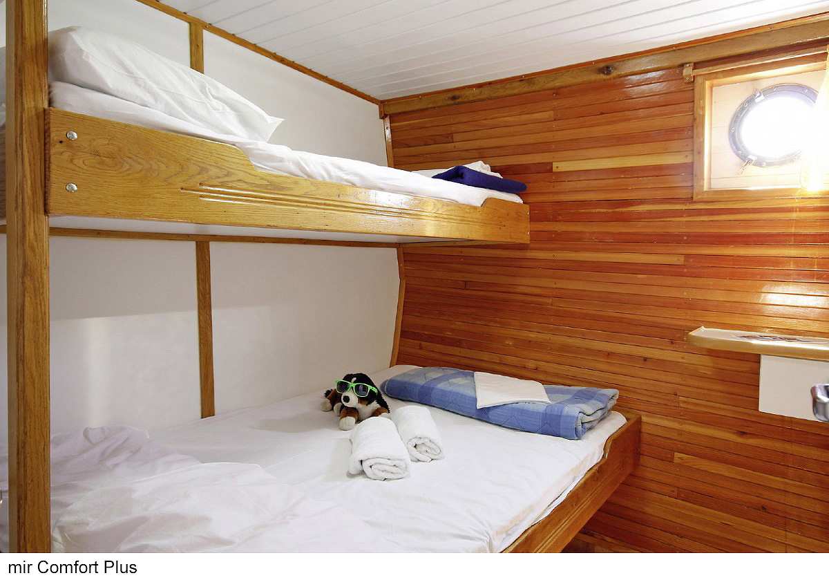kajuta s palandou nebo francouzským lůžkem, vlastní sociální zařízení se sprchou a WC, popis platí i pro Comfort plus 1