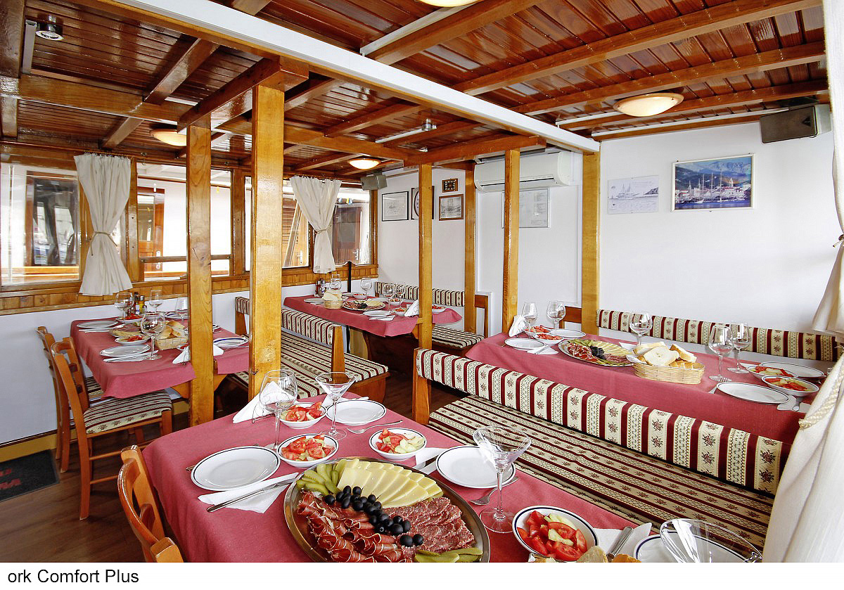 lodě kategorie Comfort plus / motorové plachetnice s dřevěným nebo ocelovým trupem, lodě kategorie Premium / pohodlné a moderně navržené motorové plachetnice a motorové jachty, většinou s ocelovým trupem, většina plavidel má koupací plošinu na zádi, lodě kategorie Deluxe / luxusní motorové jachty s ocelovým trupem, krytý salonek na horní palubě a koupací plošina na zádi.Za příplatek lze rezervovat kajutu na palubě, pouze předem na vyžádání. U kategorie Comfort plus voda ze sprchy odtéká do podlahové vpusti, nejedná se o sprchový kout a není oddělená závěsem.