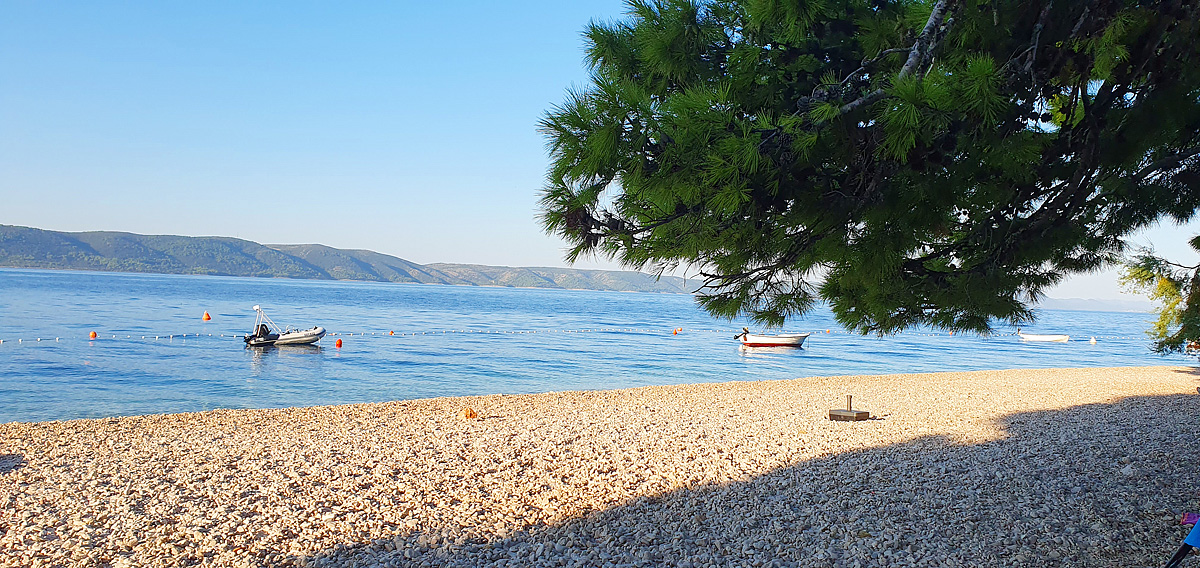 Živogošće - Mala Duba, centrum - 1 km, pláž / oblázková s drobnými kamínky a velmi mírným vstupem do moře - 80 m