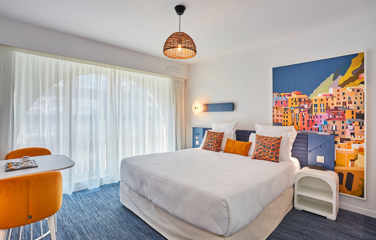 23 m² - obývací pokoj s malým kuchyňským koutem a manželskou postelí či 2 samostatnými lůžky, sociální zařízení se sprchou; výhled na moře