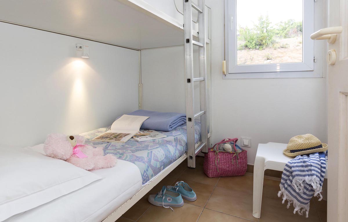 60 m² - 1 ložnice s manželskou postelí, kabina s palandou, obývací pokoj s kuchyňským koutem a rozkládacím gaučem typu „šuplík“ pro 2 osoby, sociální zařízení s vanou, prostorná terasa s výhledem na bazén