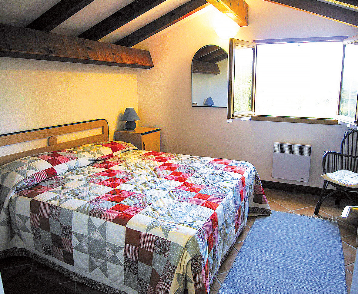 46 m² - 1 ložnice s manželskou postelí, 1 ložnice se 2 samostatnými lůžky, obývací pokoj s kuchyňským koutem a rozkládacím gaučem pro 2 osoby, sociální zařízení se sprchou, balkon, terasa či předzahrádka