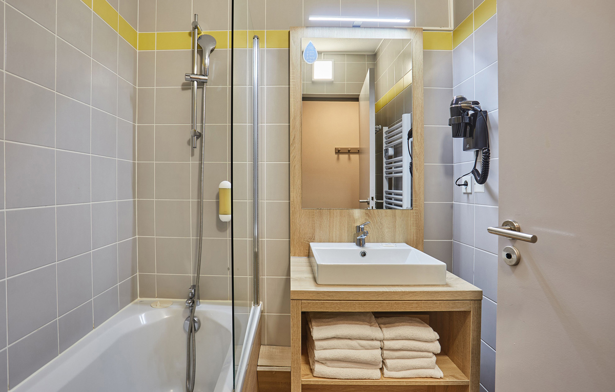 47 m² - 1 ložnice s manželskou postelí, 1 ložnice s manželskou postelí s oddělitelnými lůžky či 2 samostatnými lůžky, obývací pokoj s kuchyňským koutem a rozkládacím gaučem pro 2 osoby (možno i typ "šuplík"), sociální zařízení se sprchou či vanou, balkón