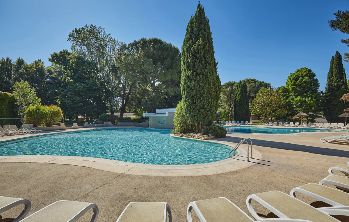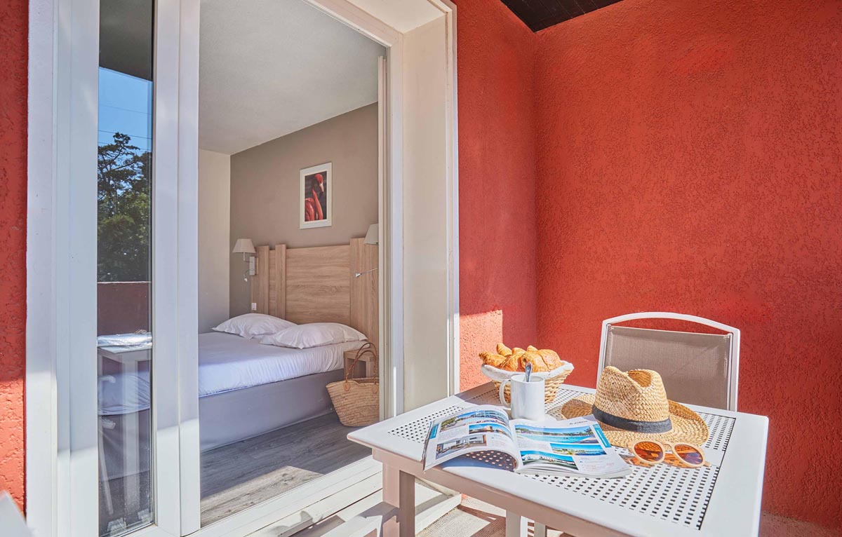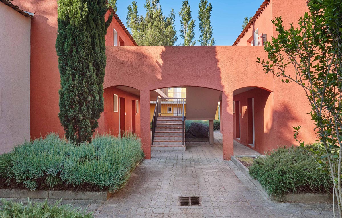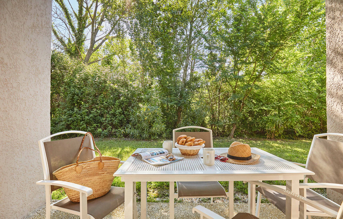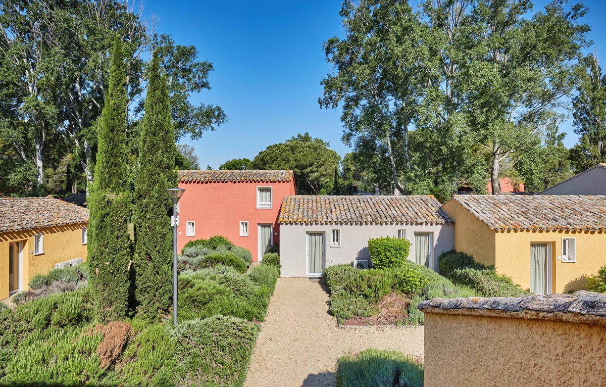 residence sestávající se z menších provensálských řadových domků obklopených bohatou zelení v rámci prázdninového residenčního komplexu 35 ha Le Village Camarguais, klimatizované nadstandardní apartmány vždy s terasou